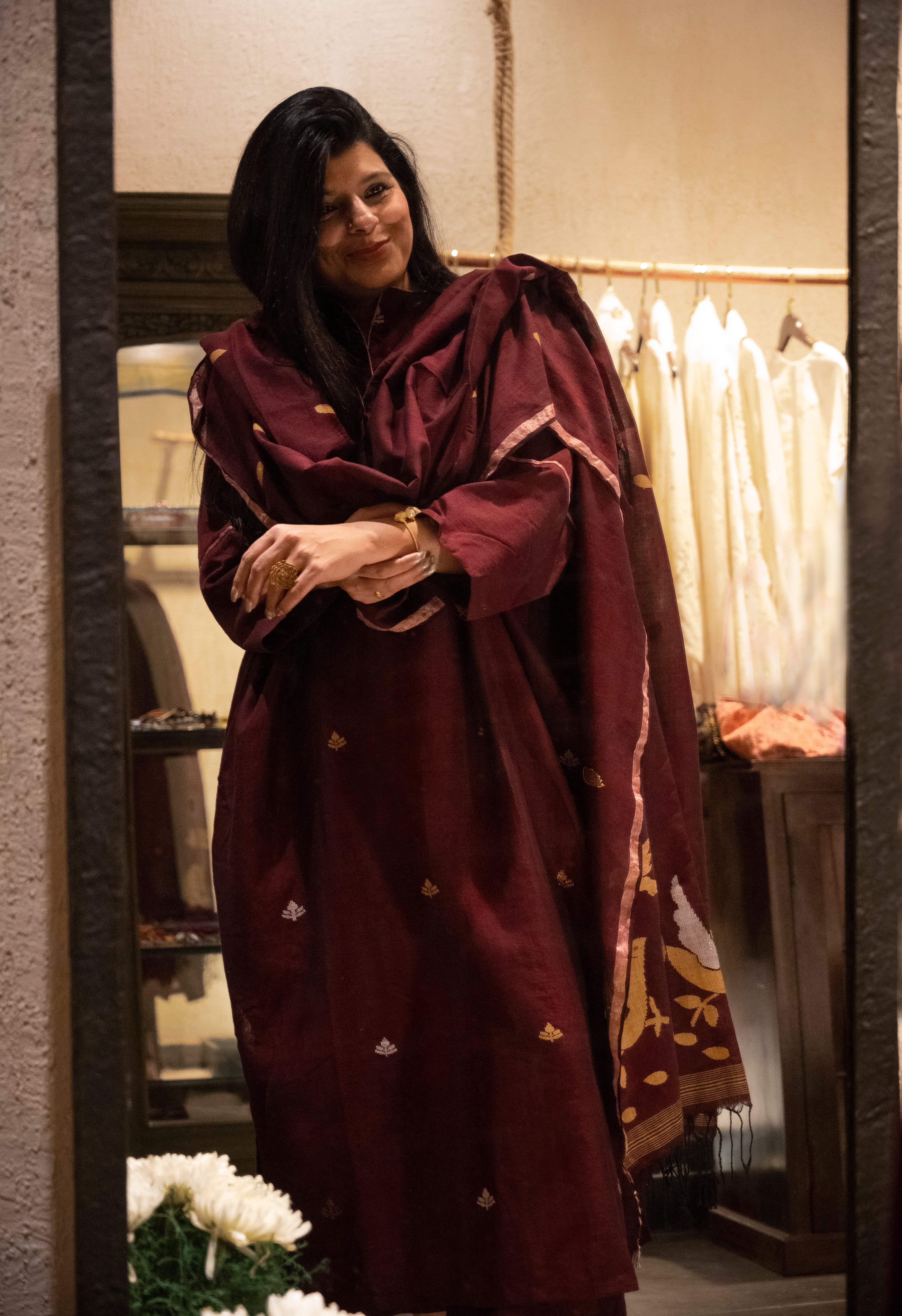 Pure handloom silk kurta set with Ajrakh Dupatta