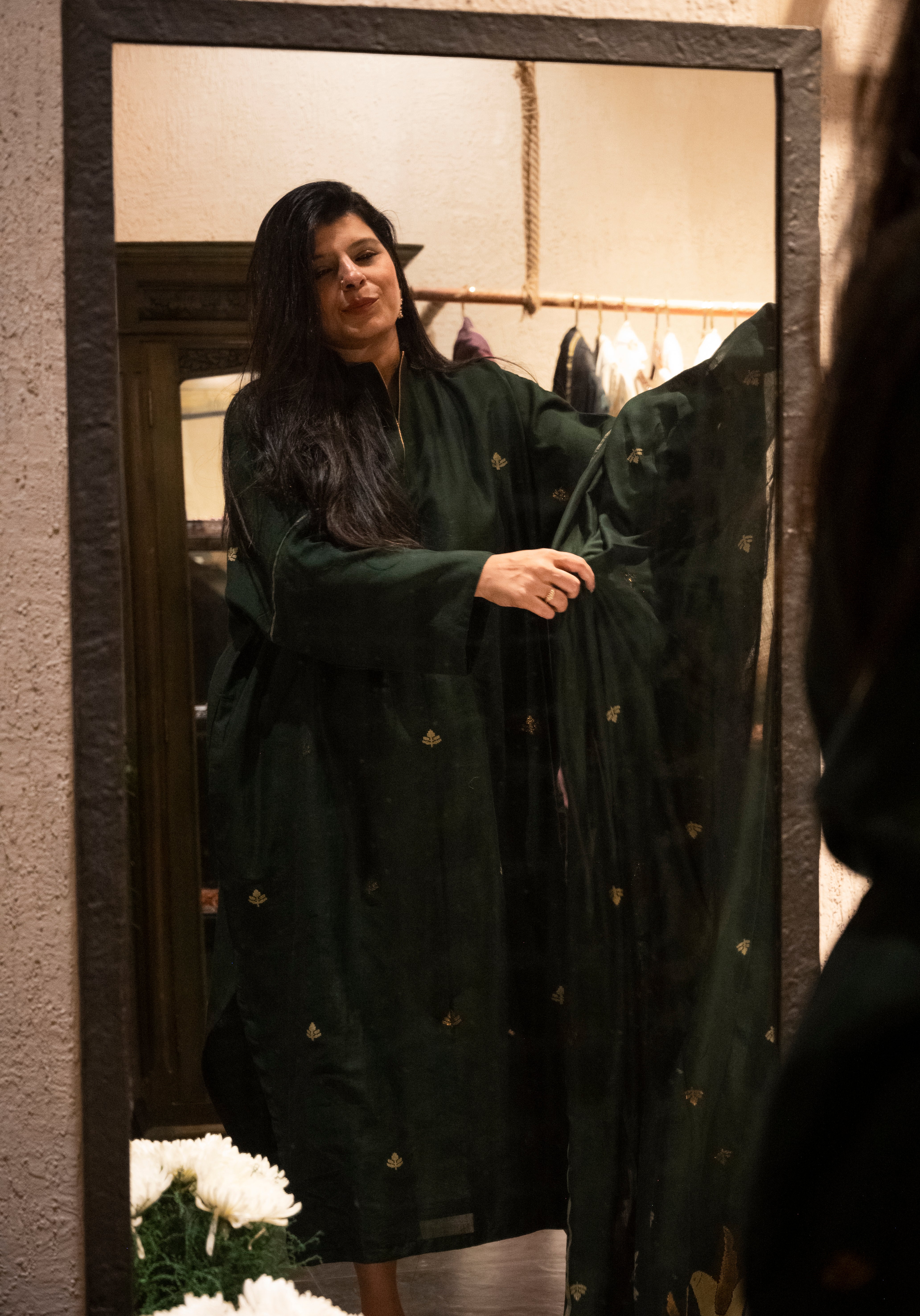 At Radhas our silhouettes are designed to be effortlessly chic and easy to wear; however, we would love to have your body measurements for reference so we can tailor the same silhouettes to suit your body type even better.