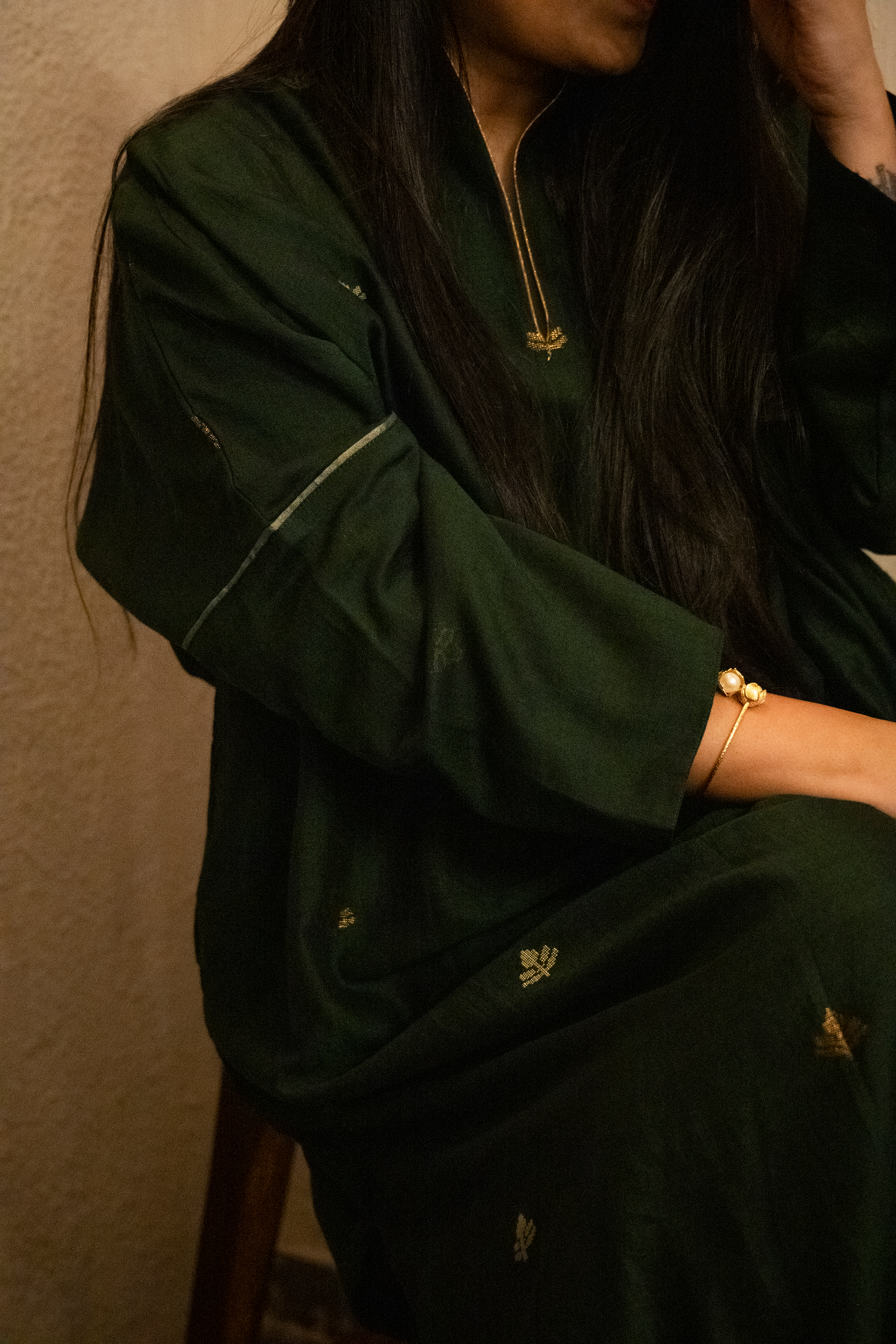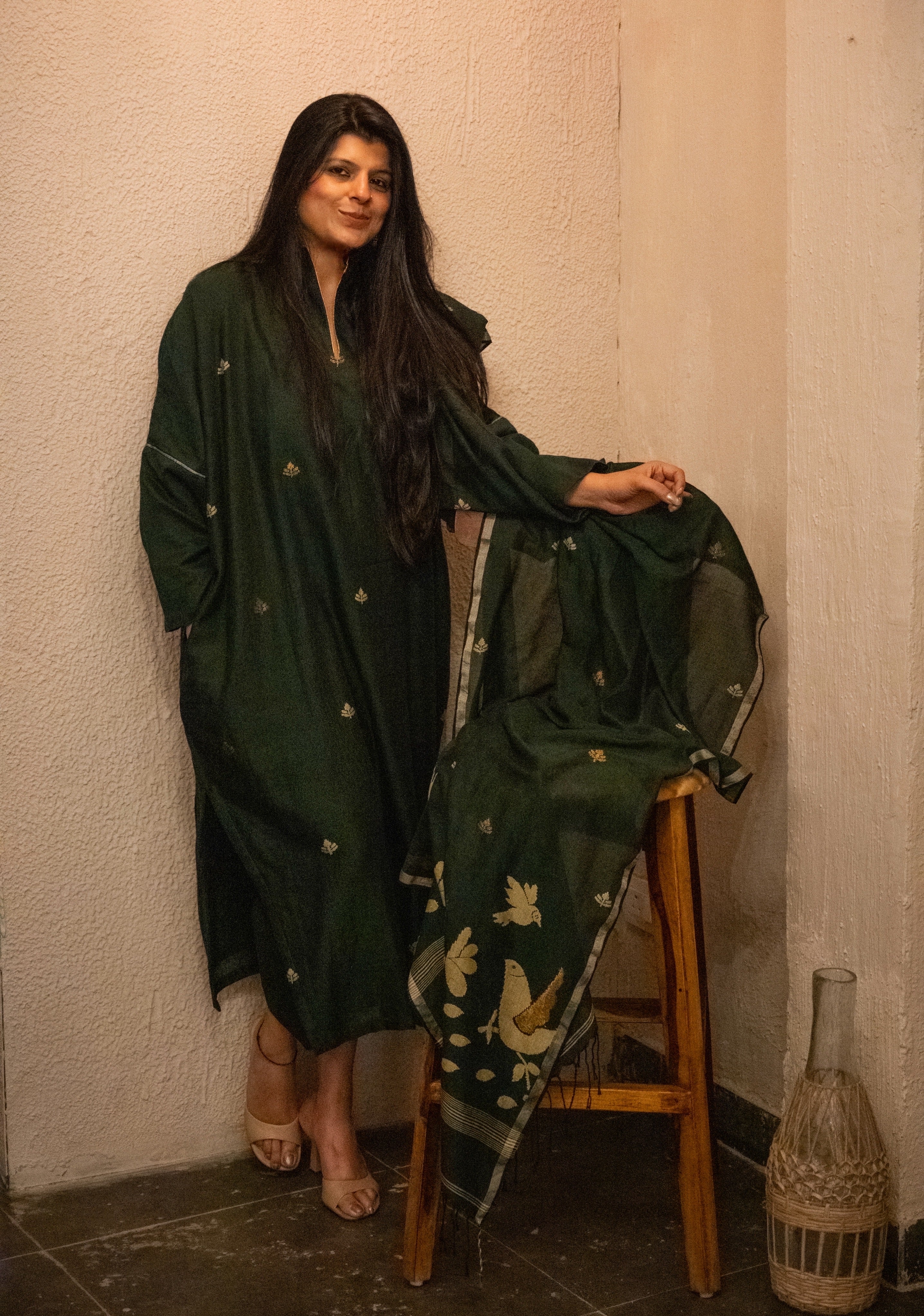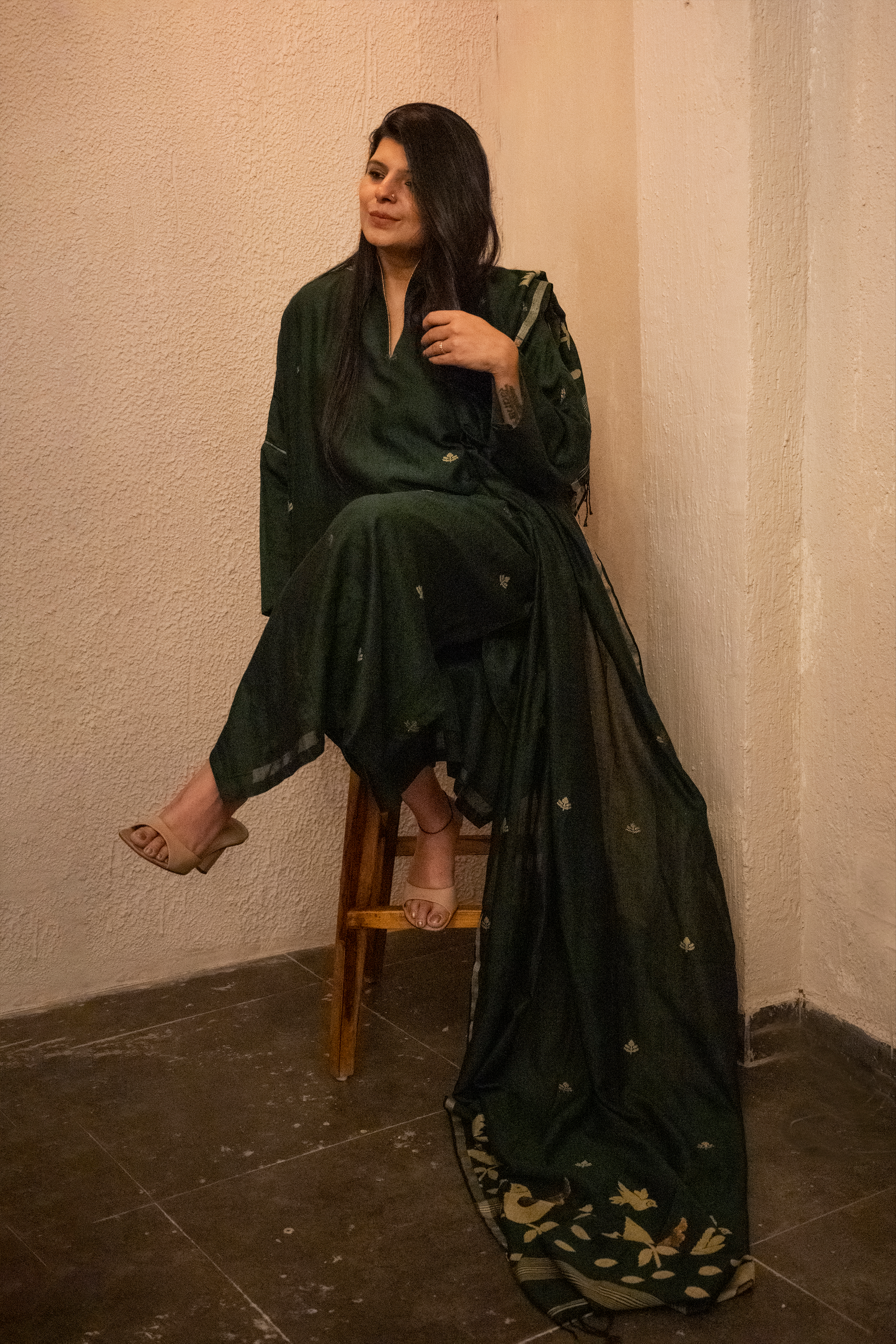 Pure handloom silk kurta set with Ajrakh Dupatta