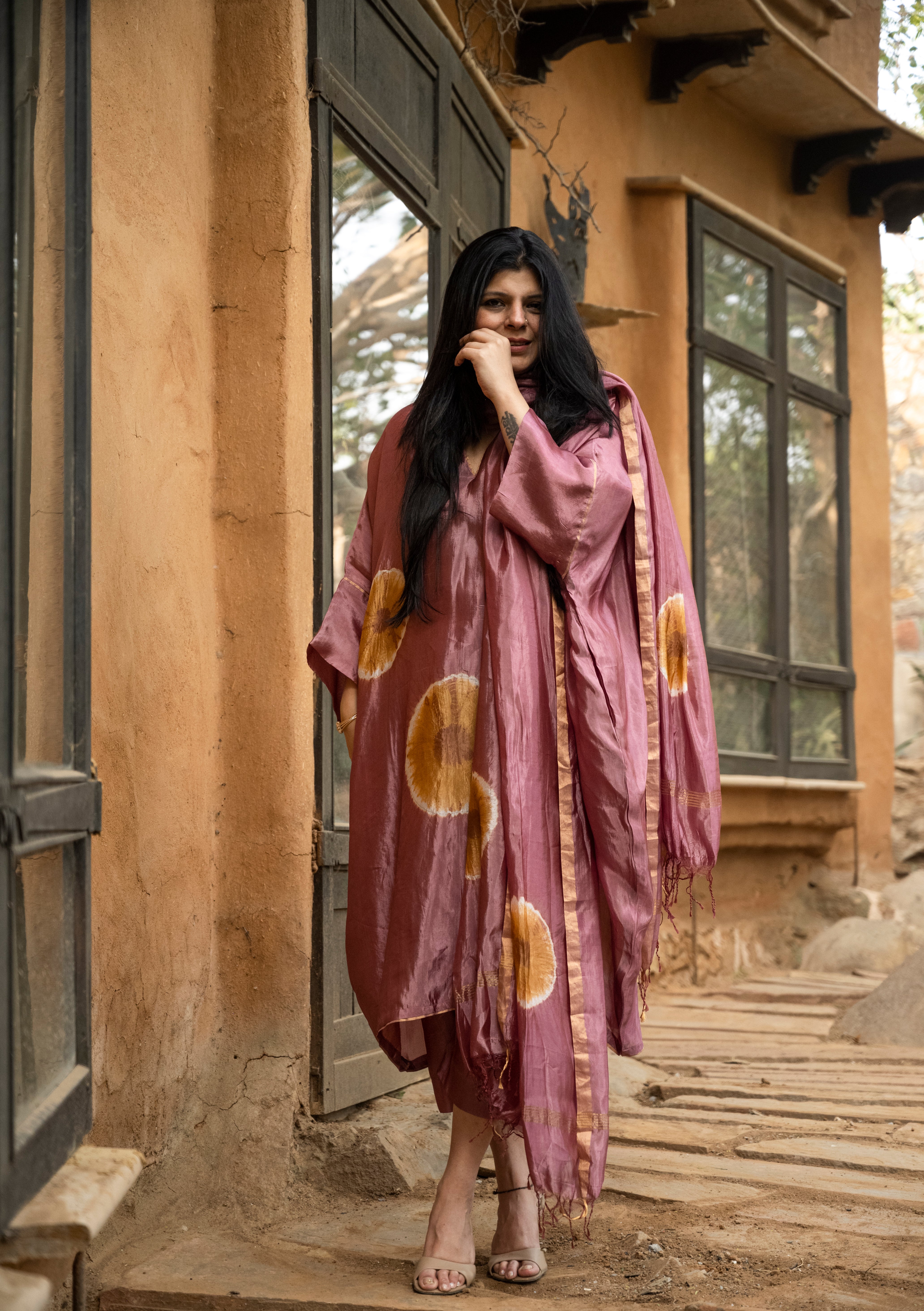 Pure handloom silk kurta set with Ajrakh Dupatta