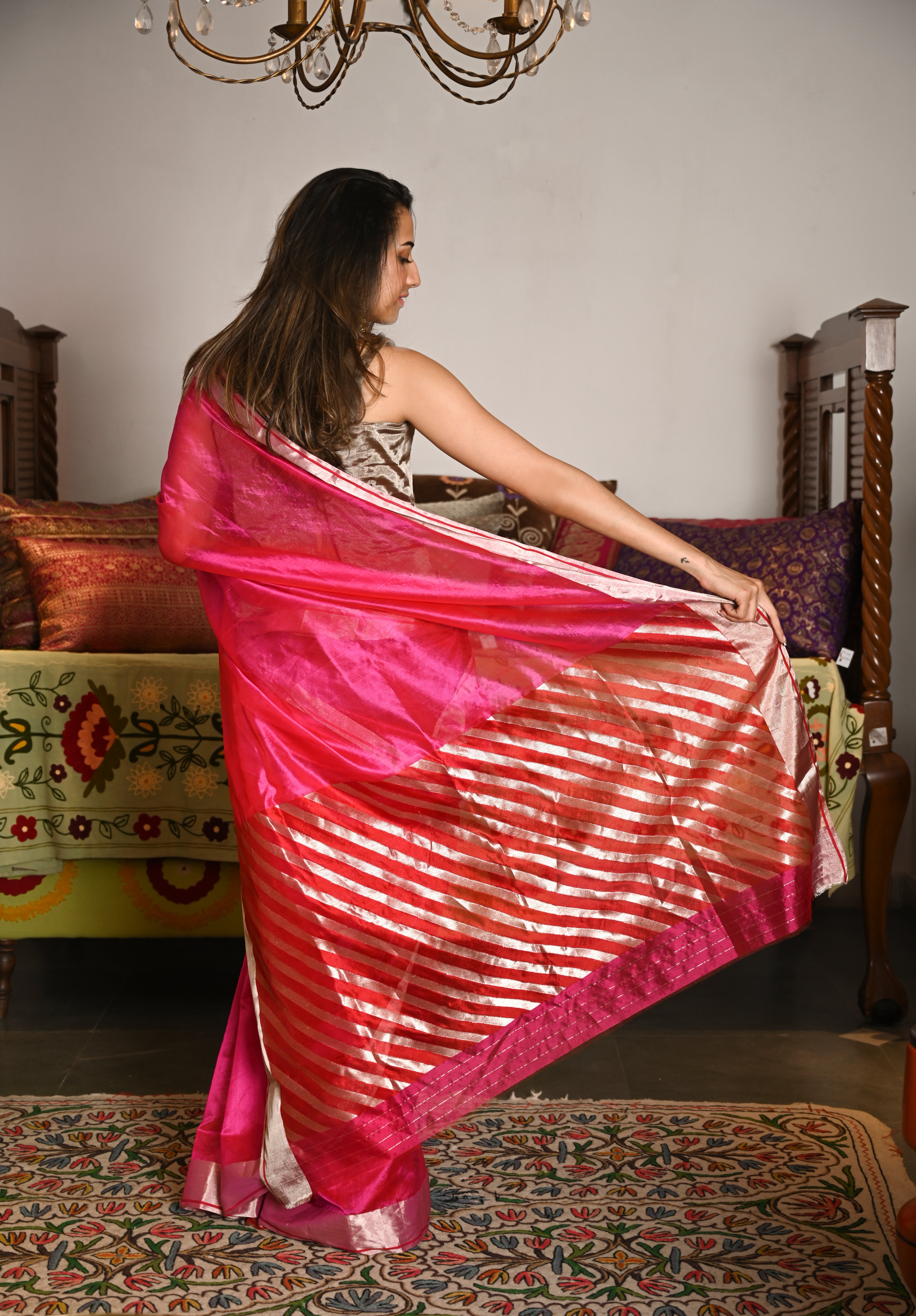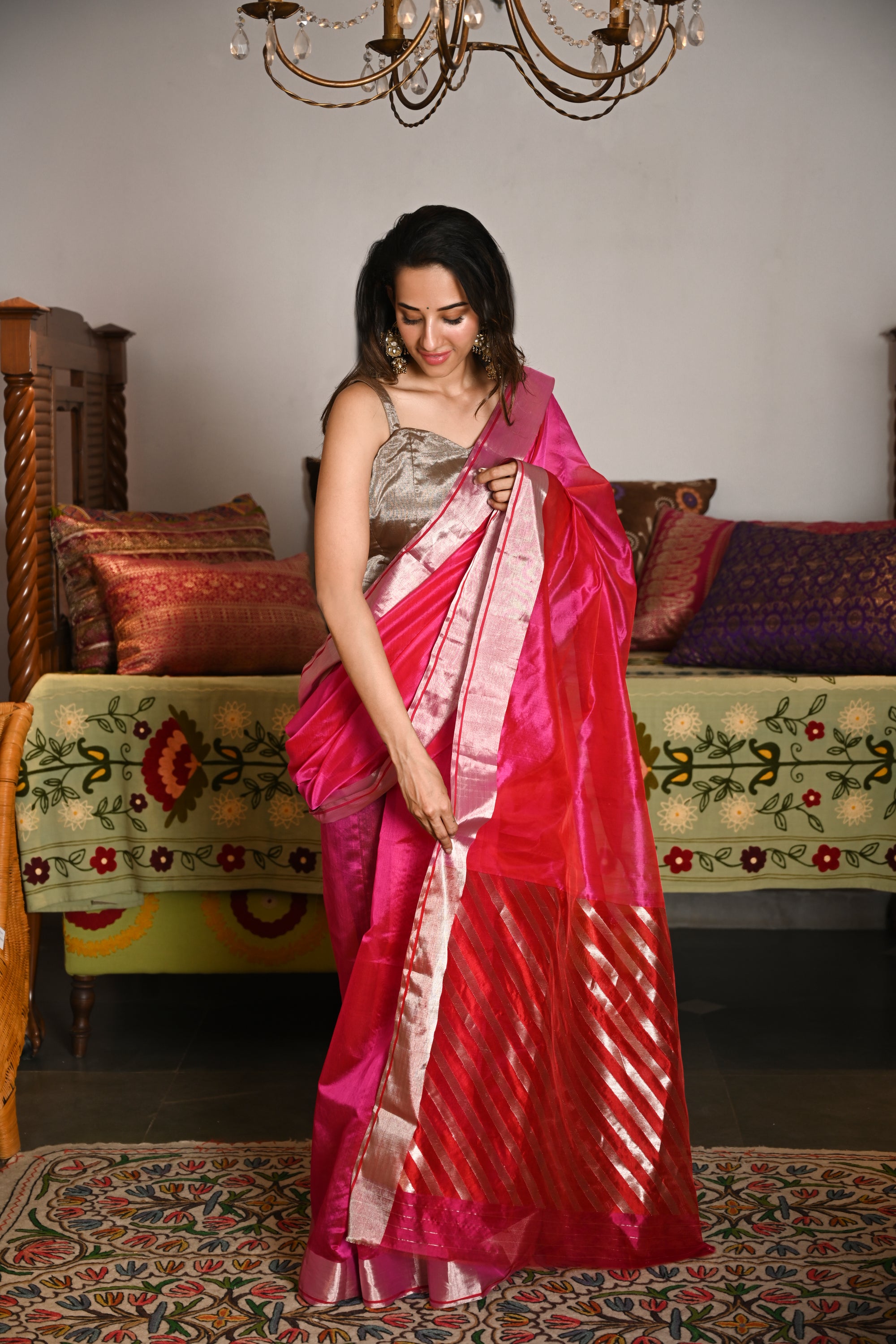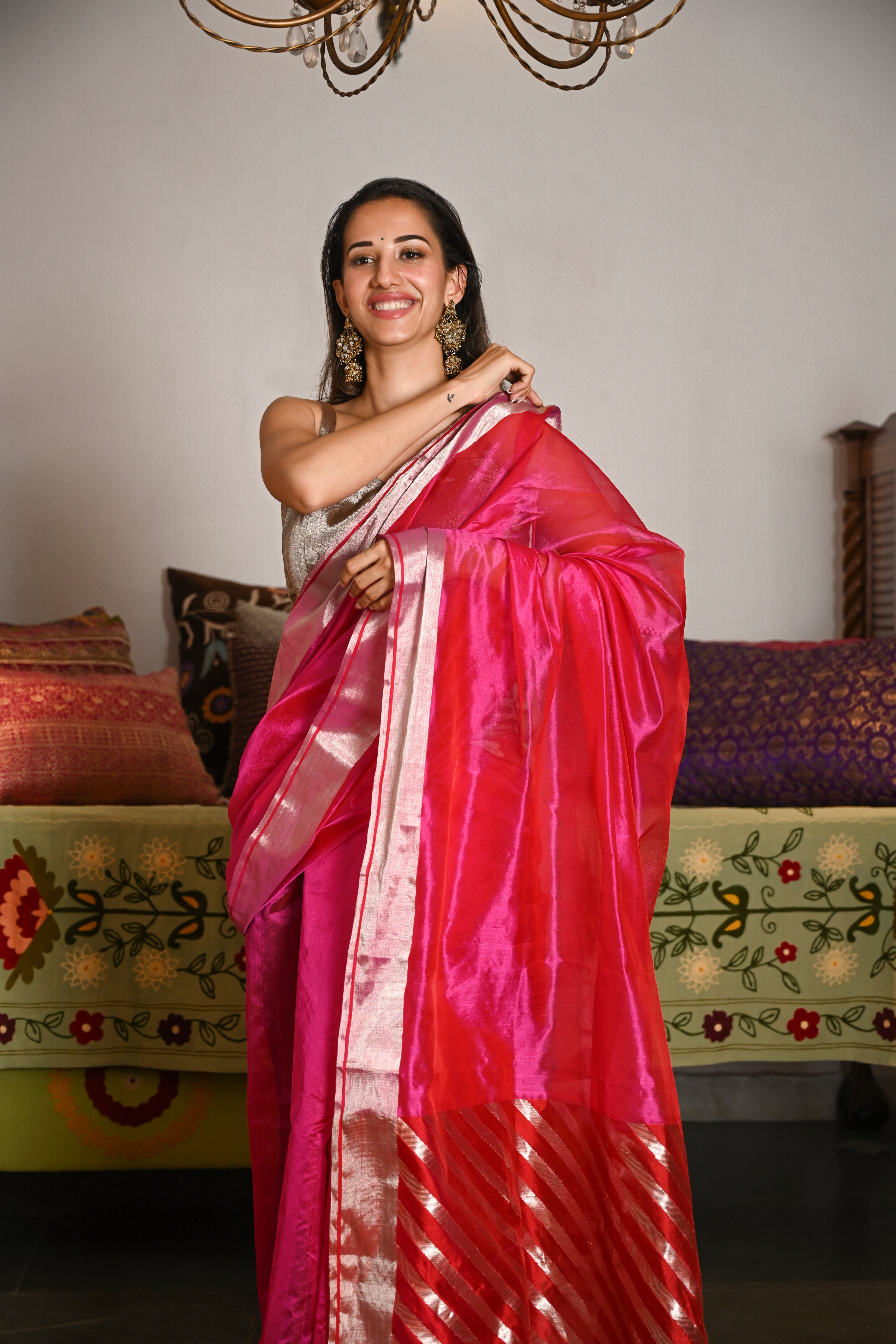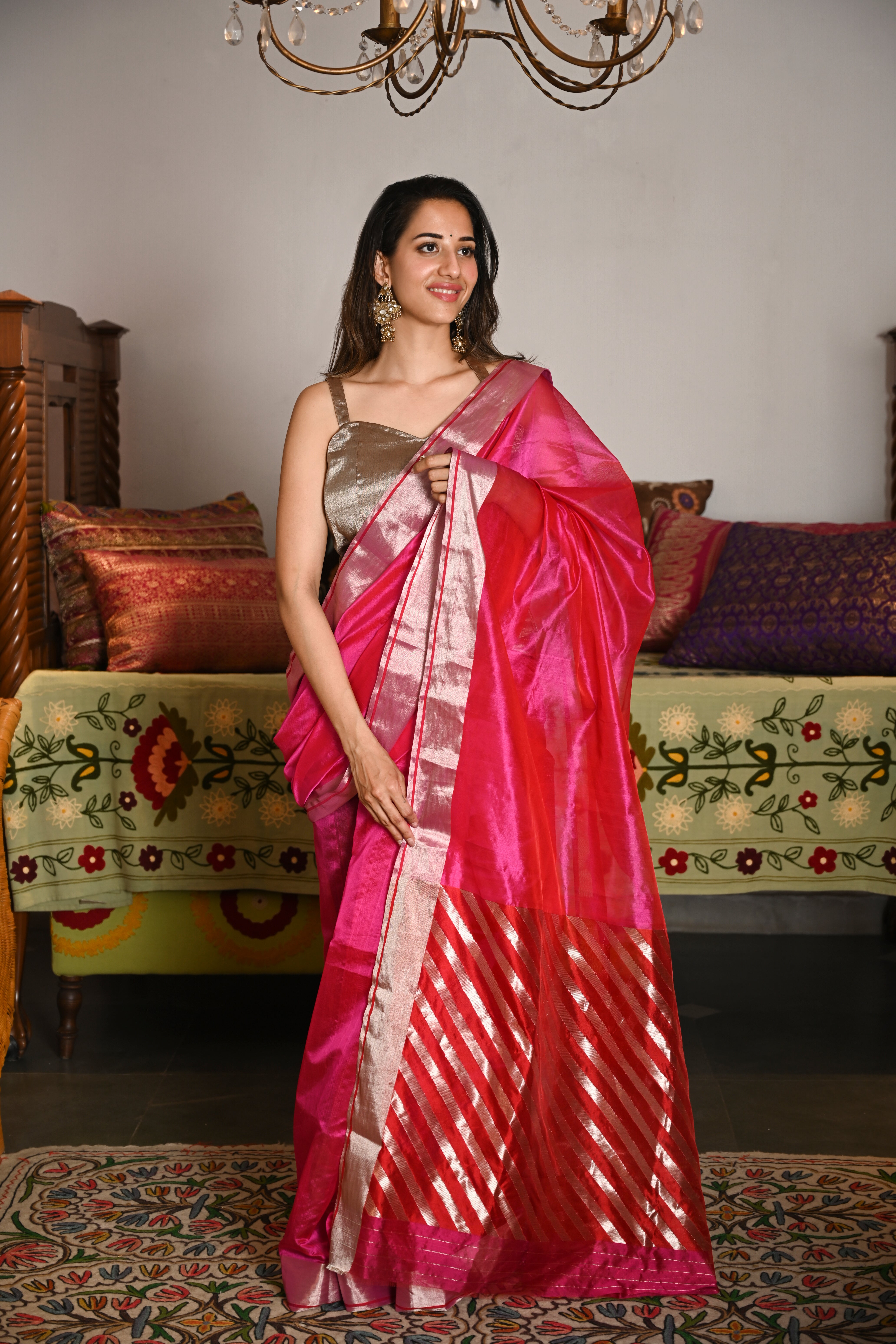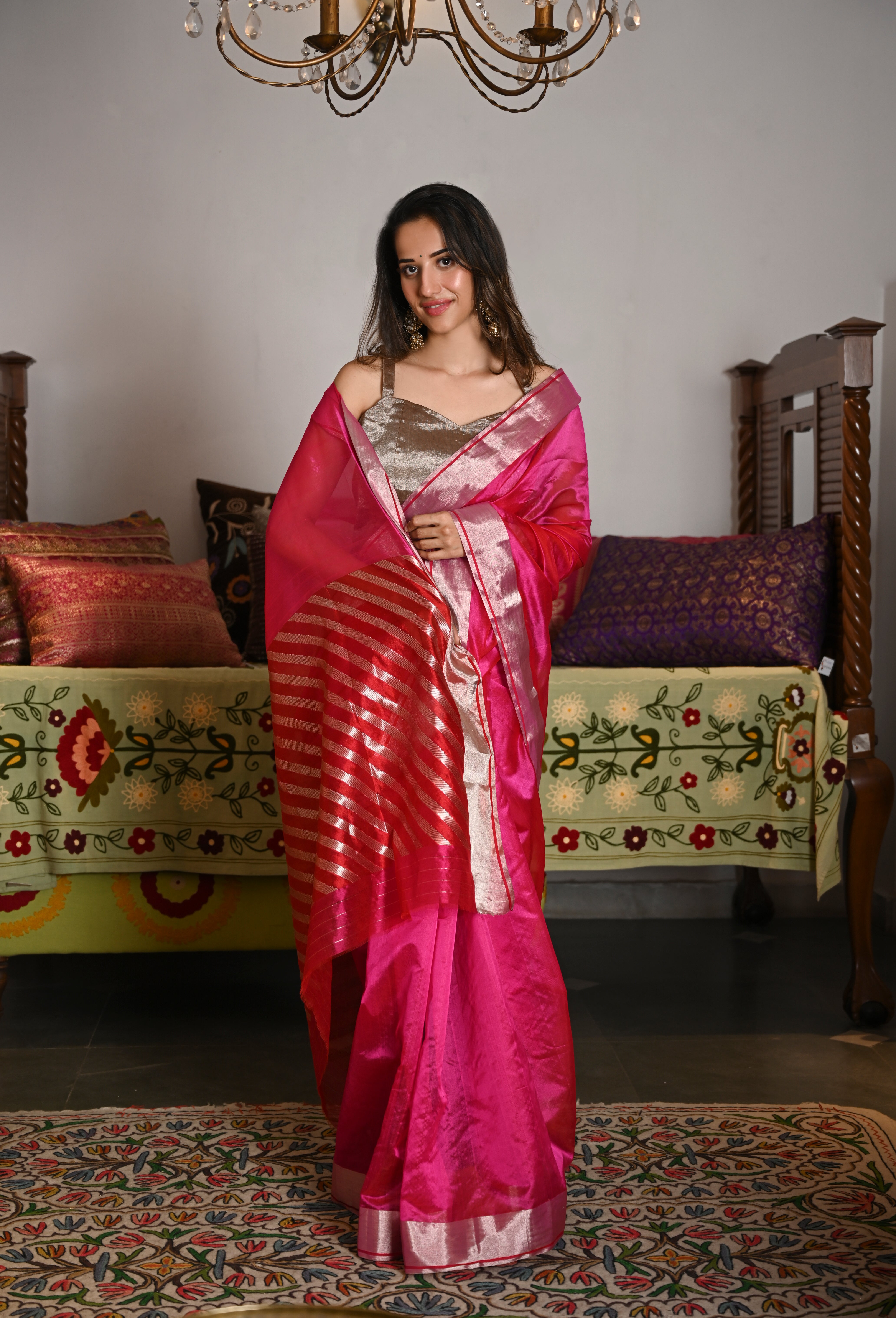 Radiant, refined, and effortlessly regal - this Hot Pink Rajwada Saree is a celebration of minimal luxury.