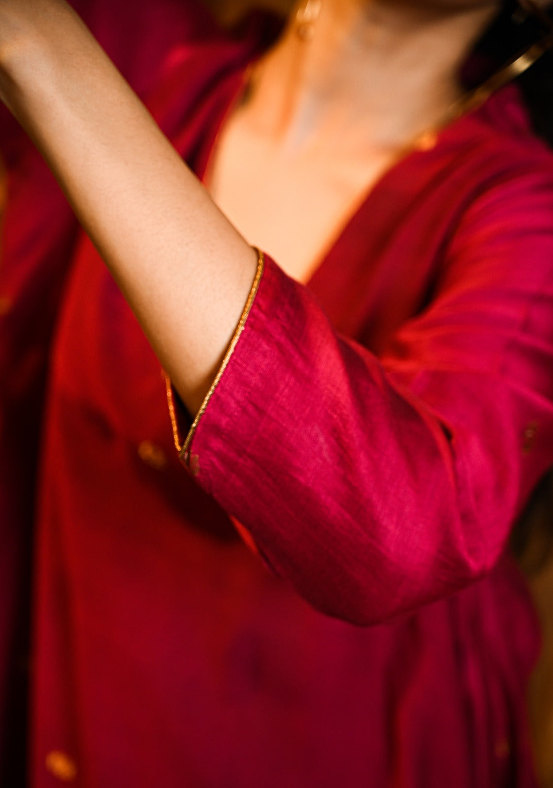 Perfect for a wearable trousseau, intimate weddings, and celebrations, this piece balances luxury with comfort. The fabric feels light on the skin, the fall is fluid, and the silhouette is easy — making it something you will actually enjoy wearing and repeating.