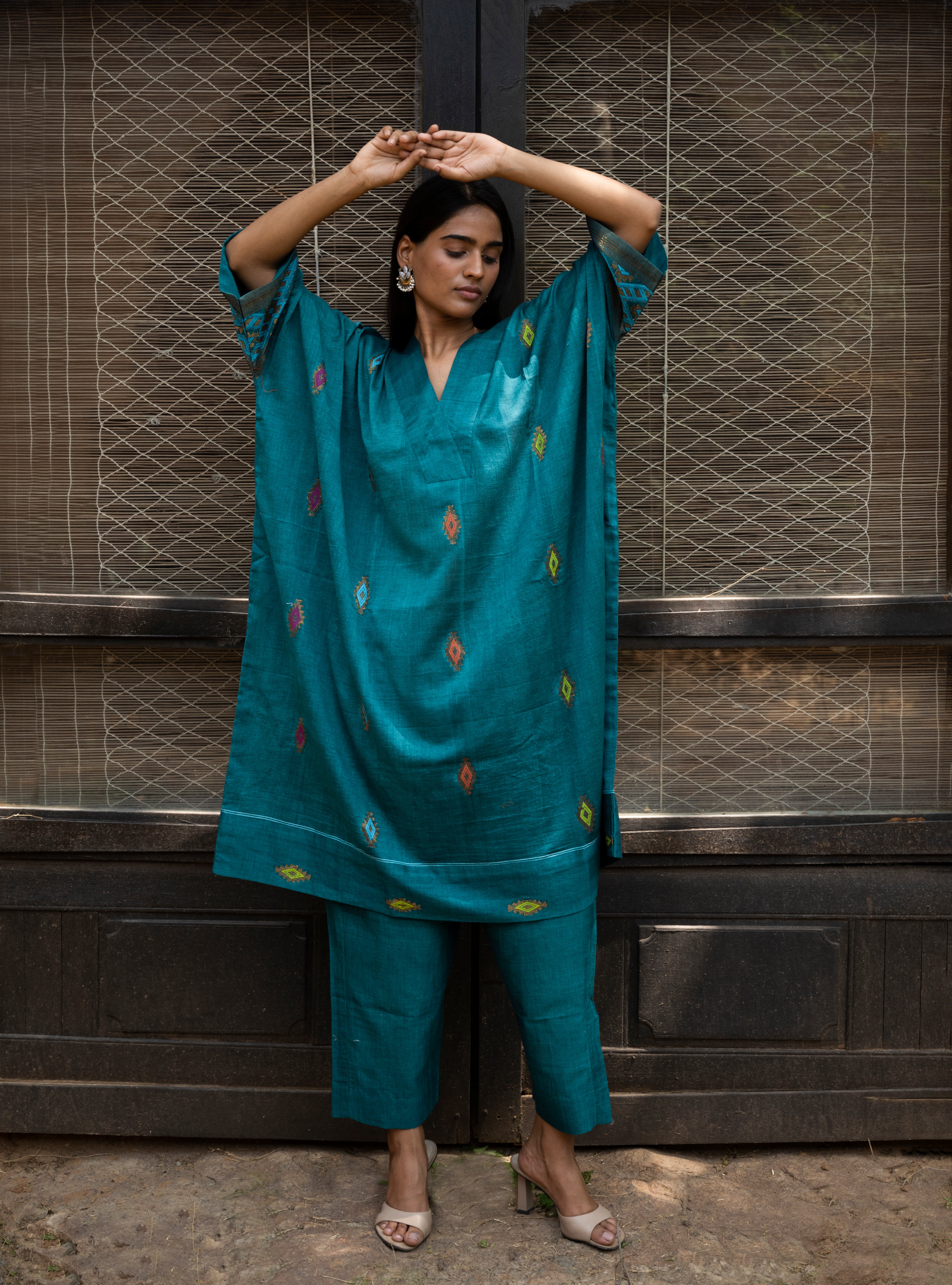 Pure handloom silk kurta set with Ajrakh Dupatta