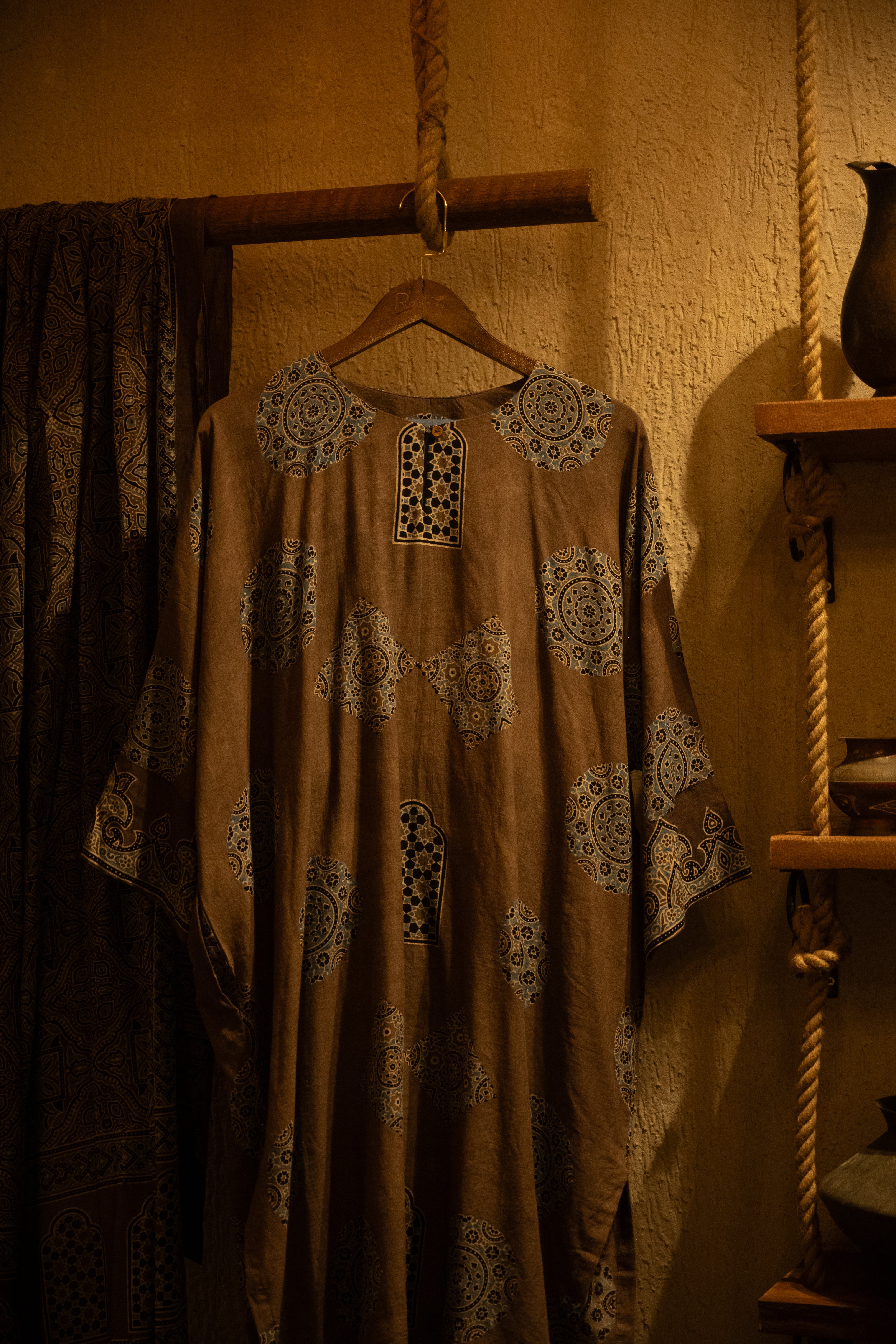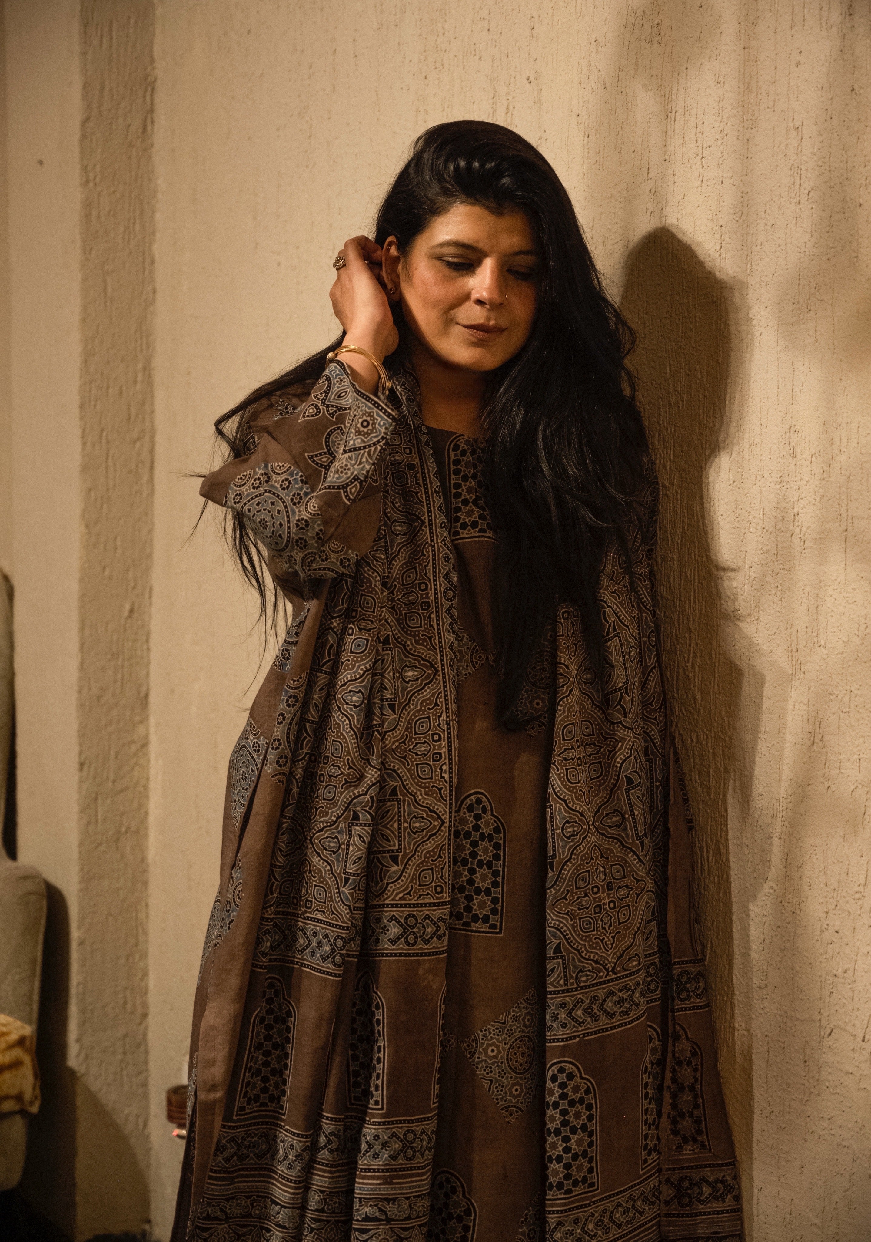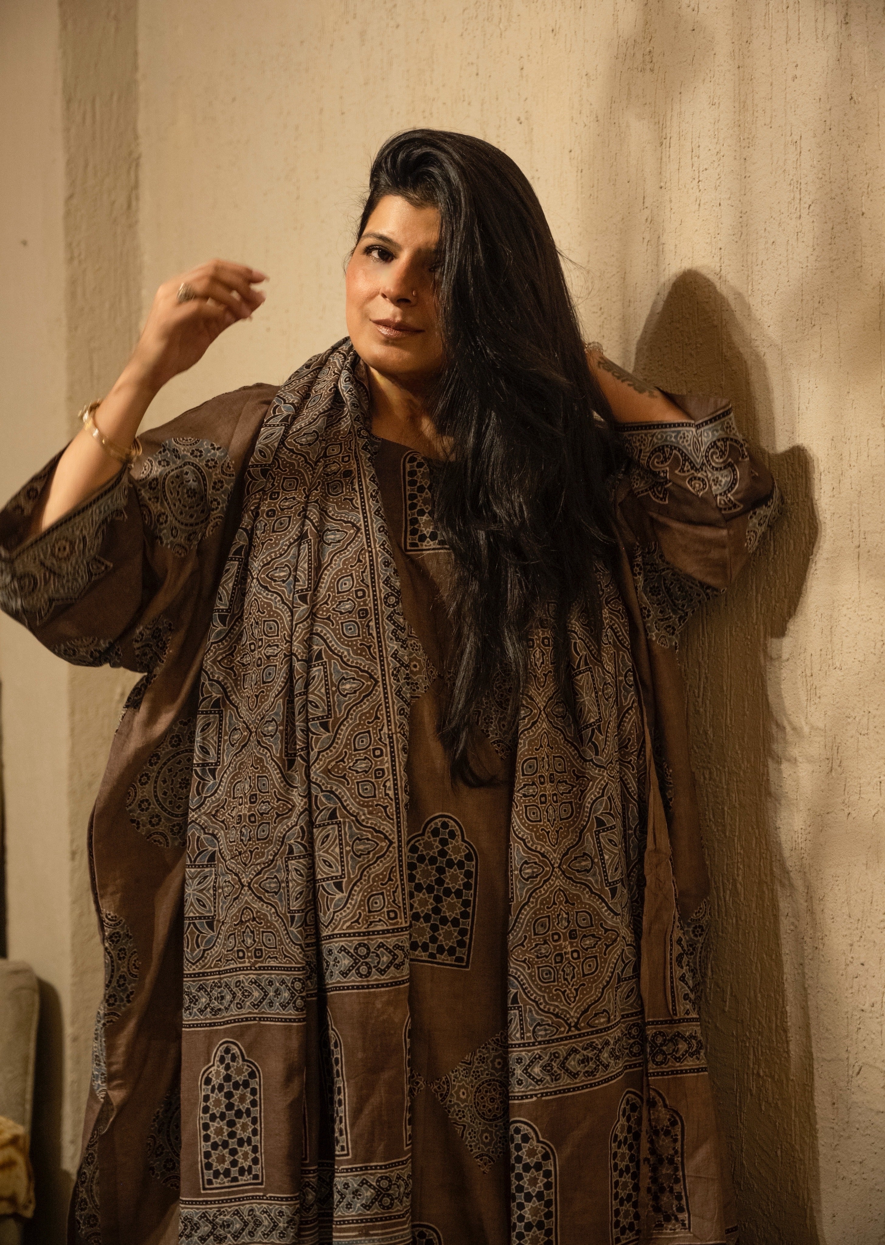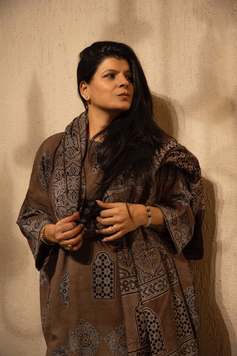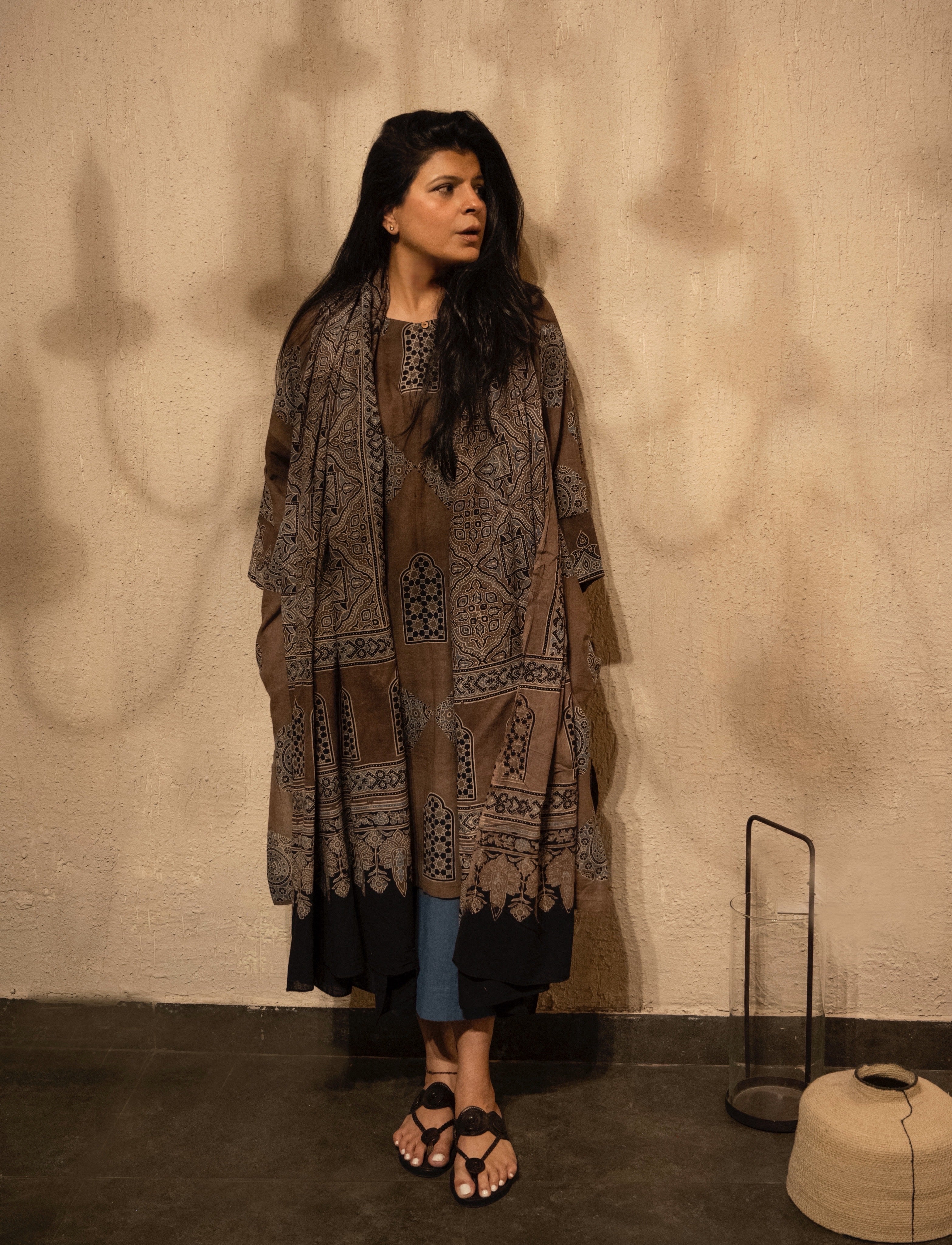 Pure handloom silk kurta set with Ajrakh Dupatta