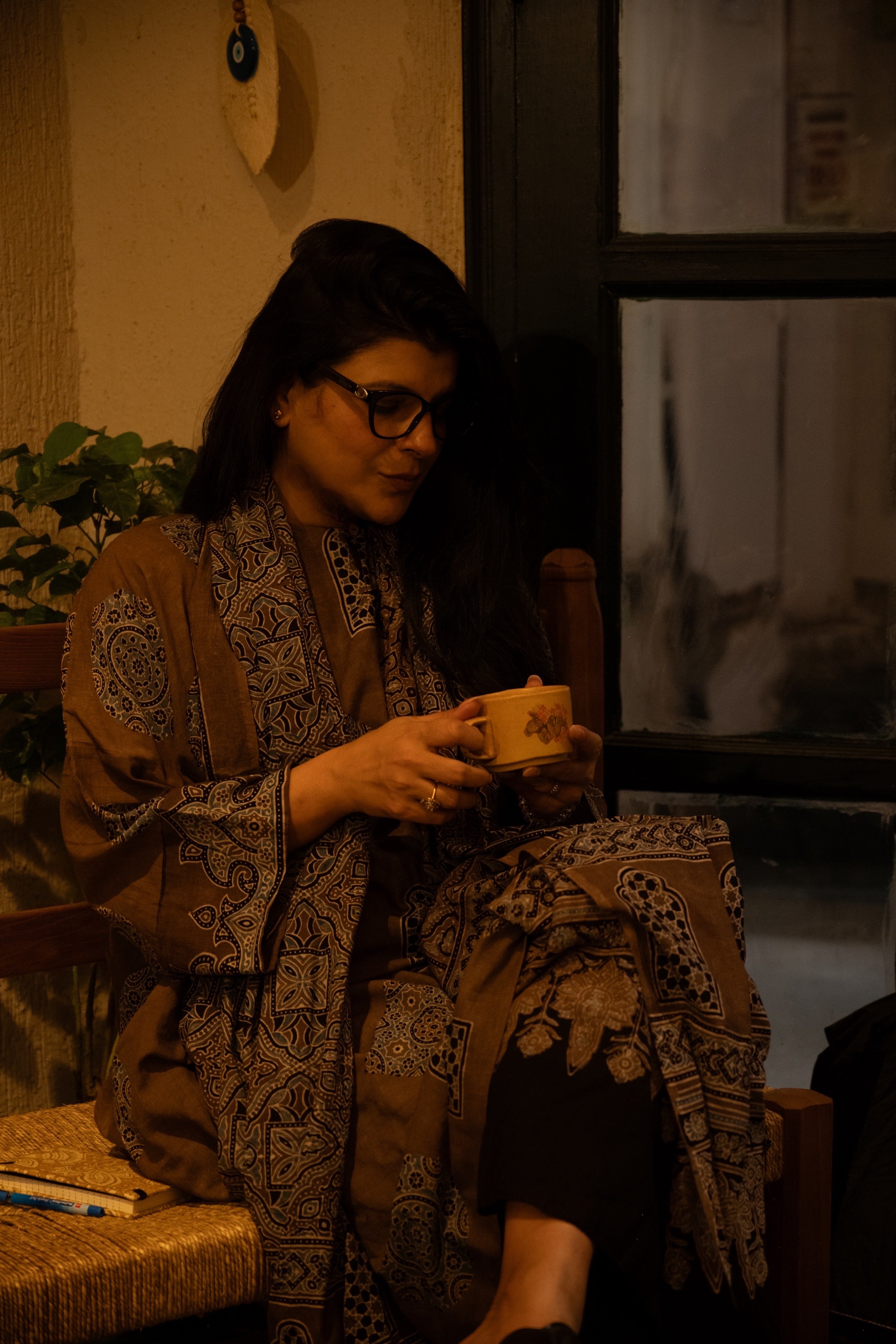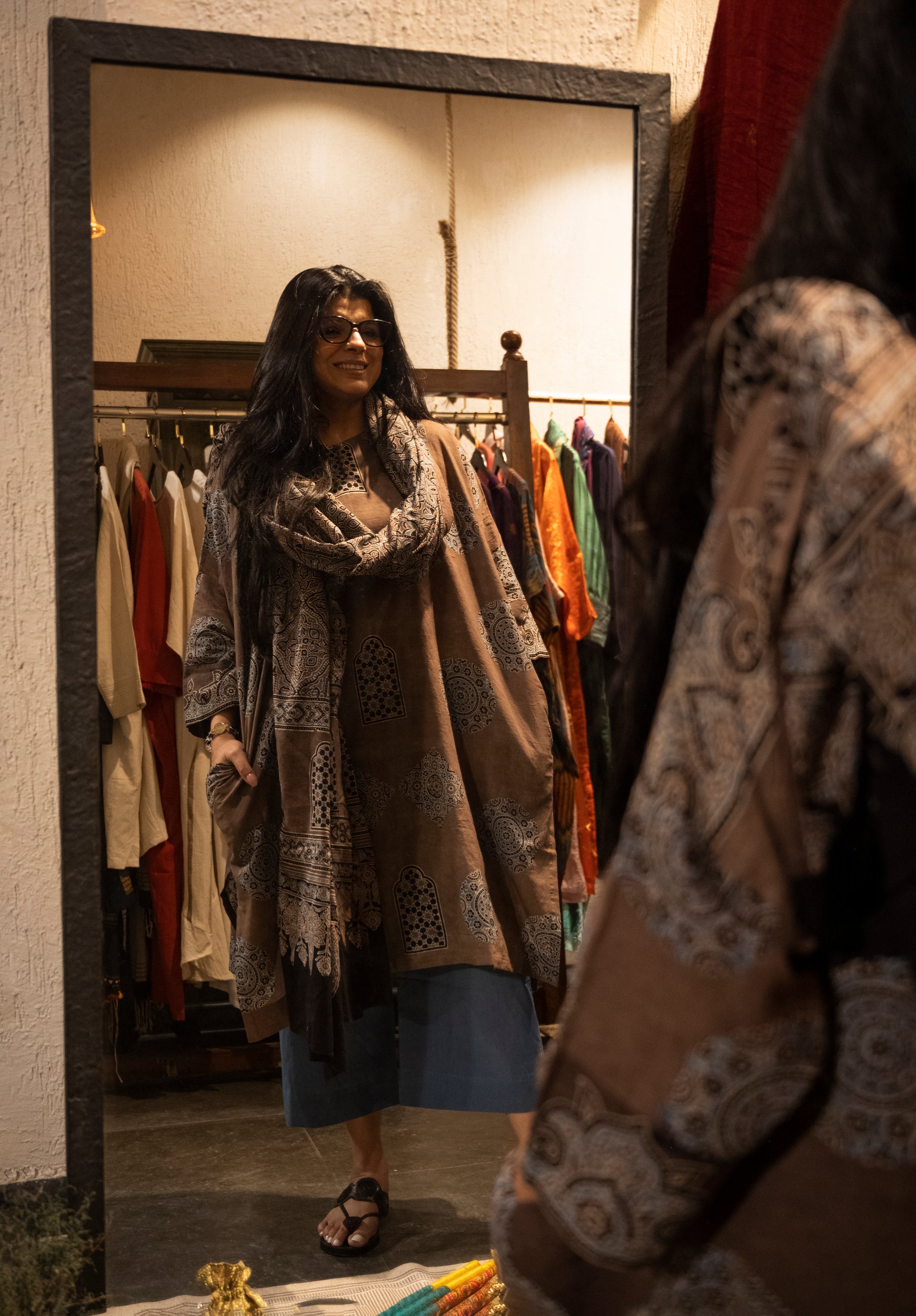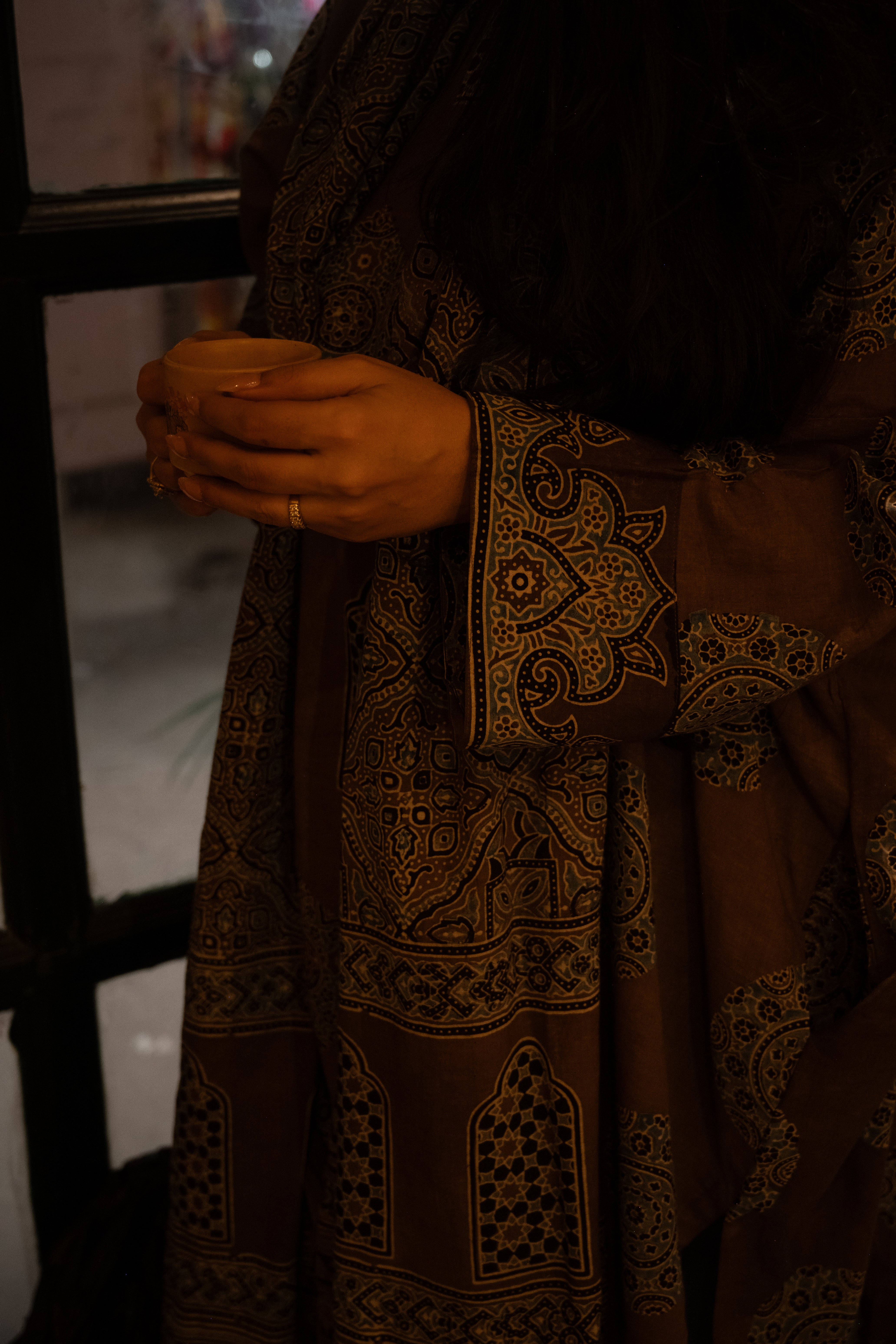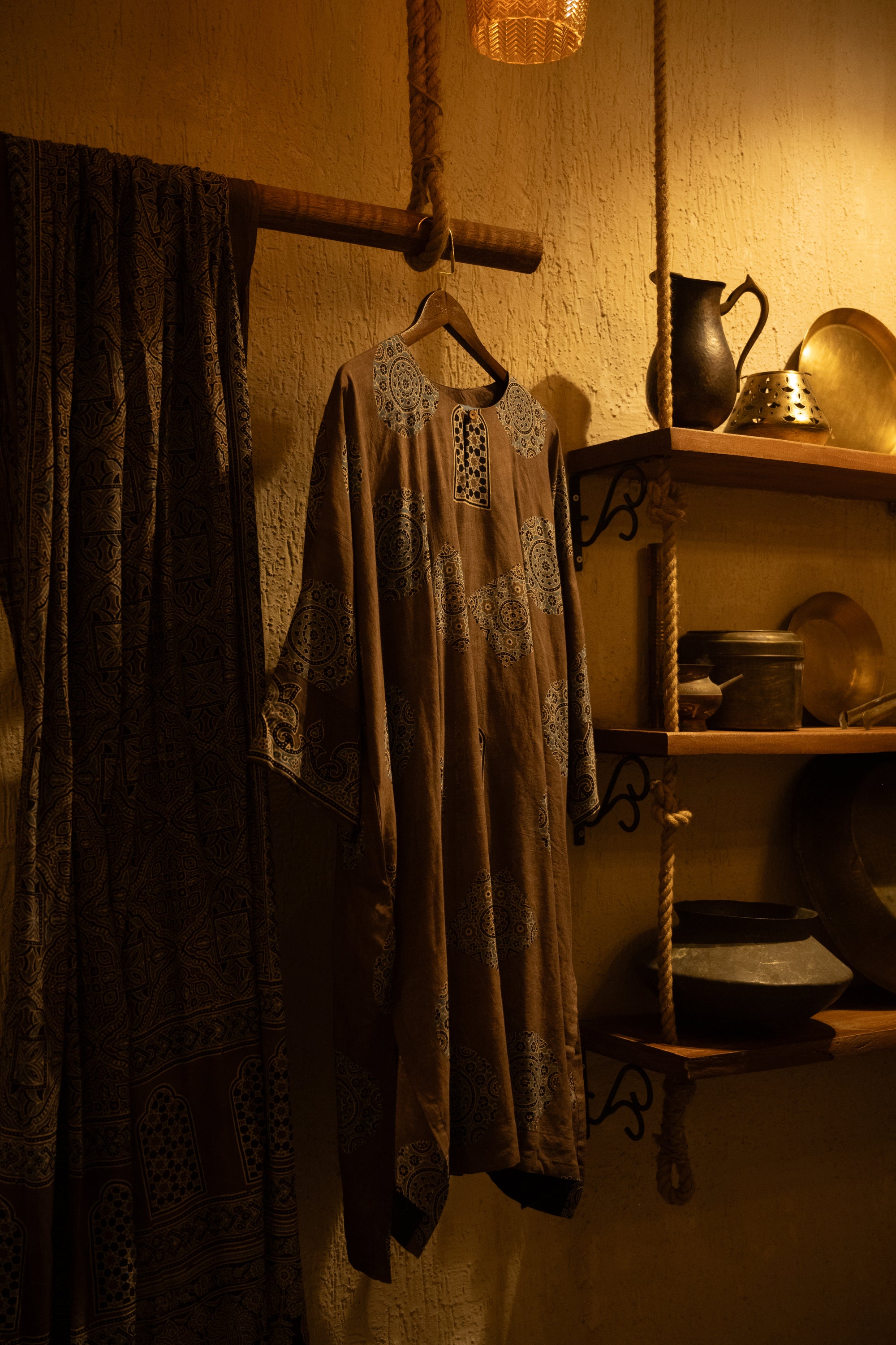 Pure handloom silk kurta set with Ajrakh Dupatta