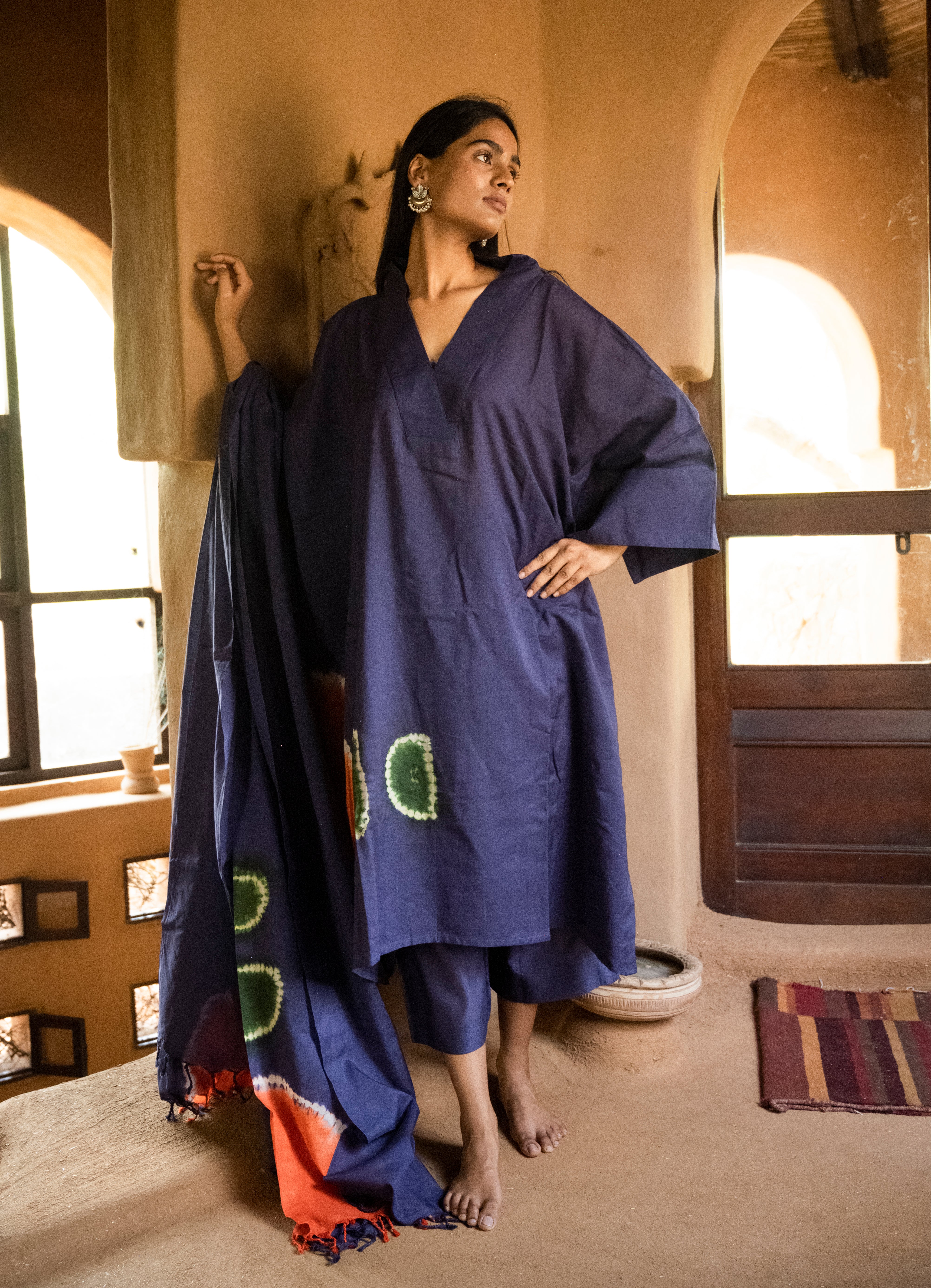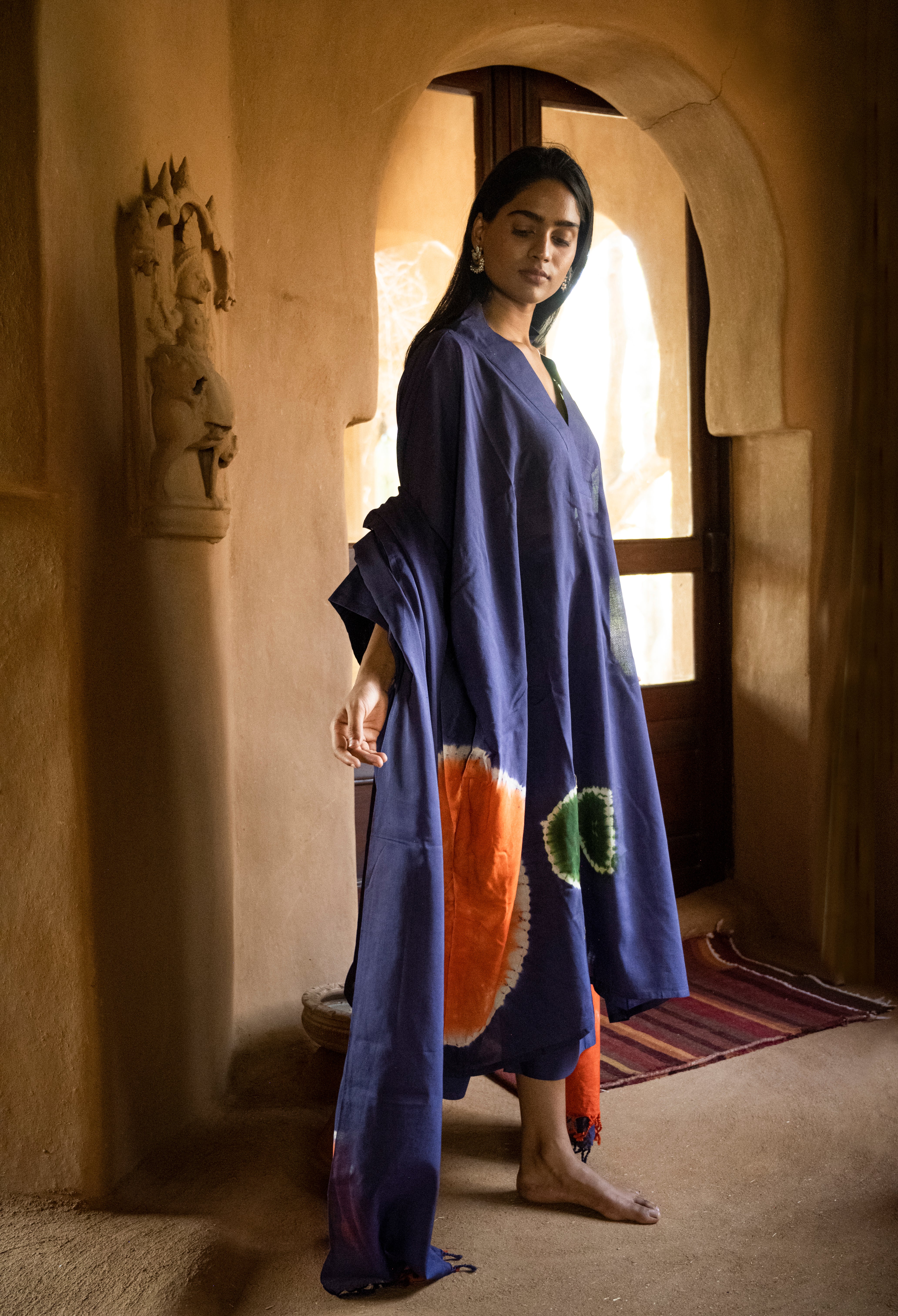 Pure handloom silk kurta set with Ajrakh Dupatta