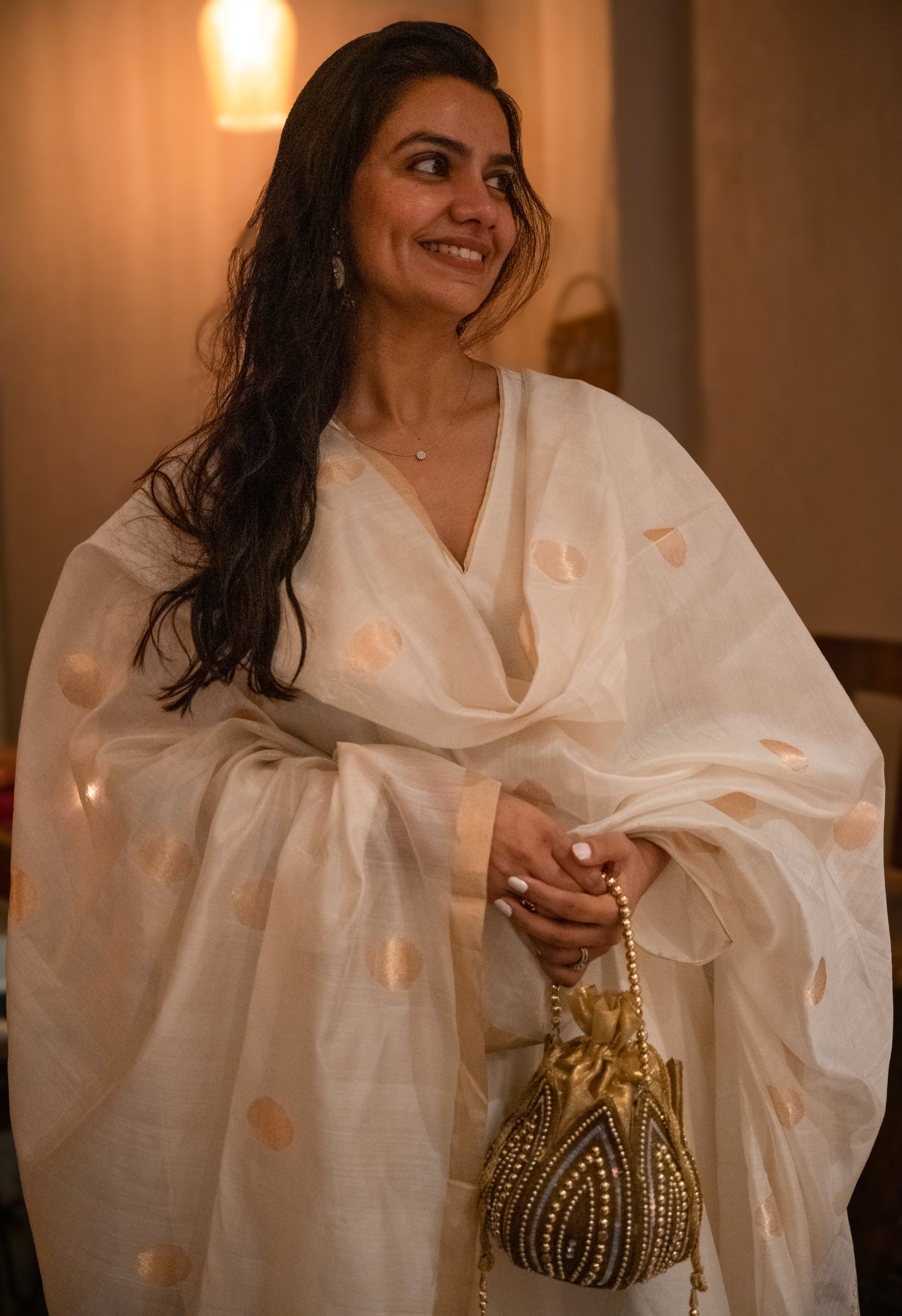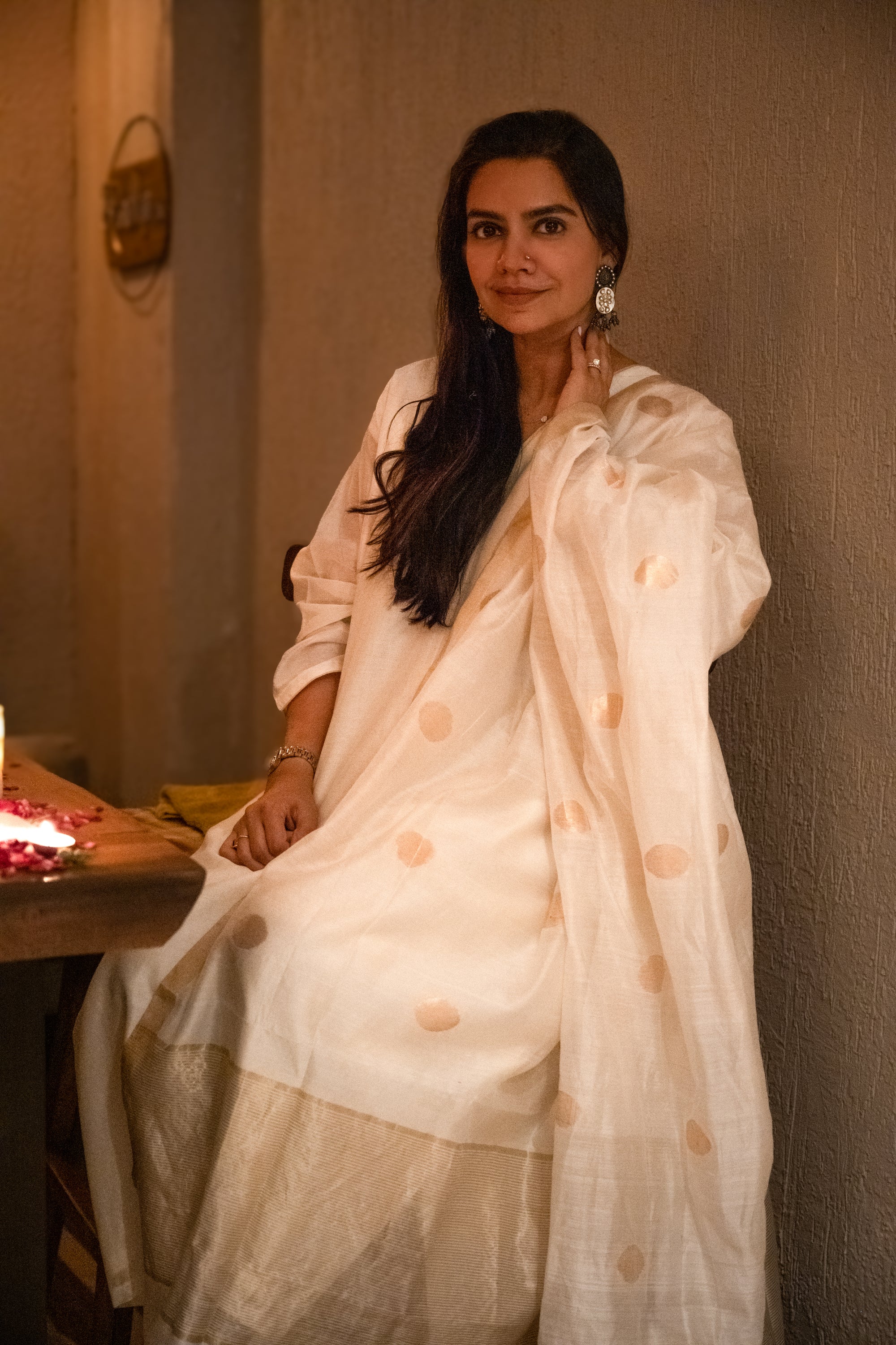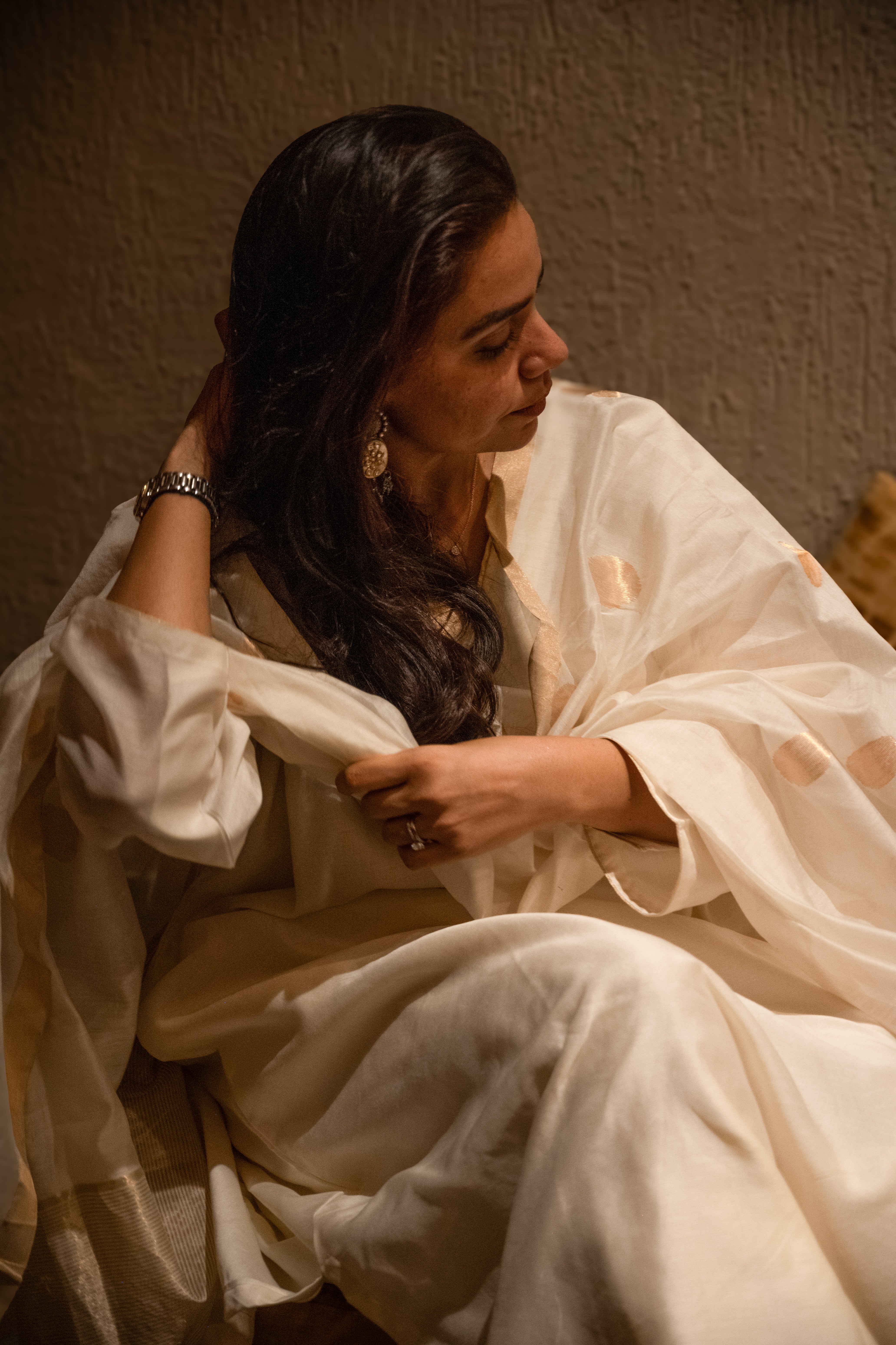 Pure Chanderi Silk With Handwoven Zari Motifs