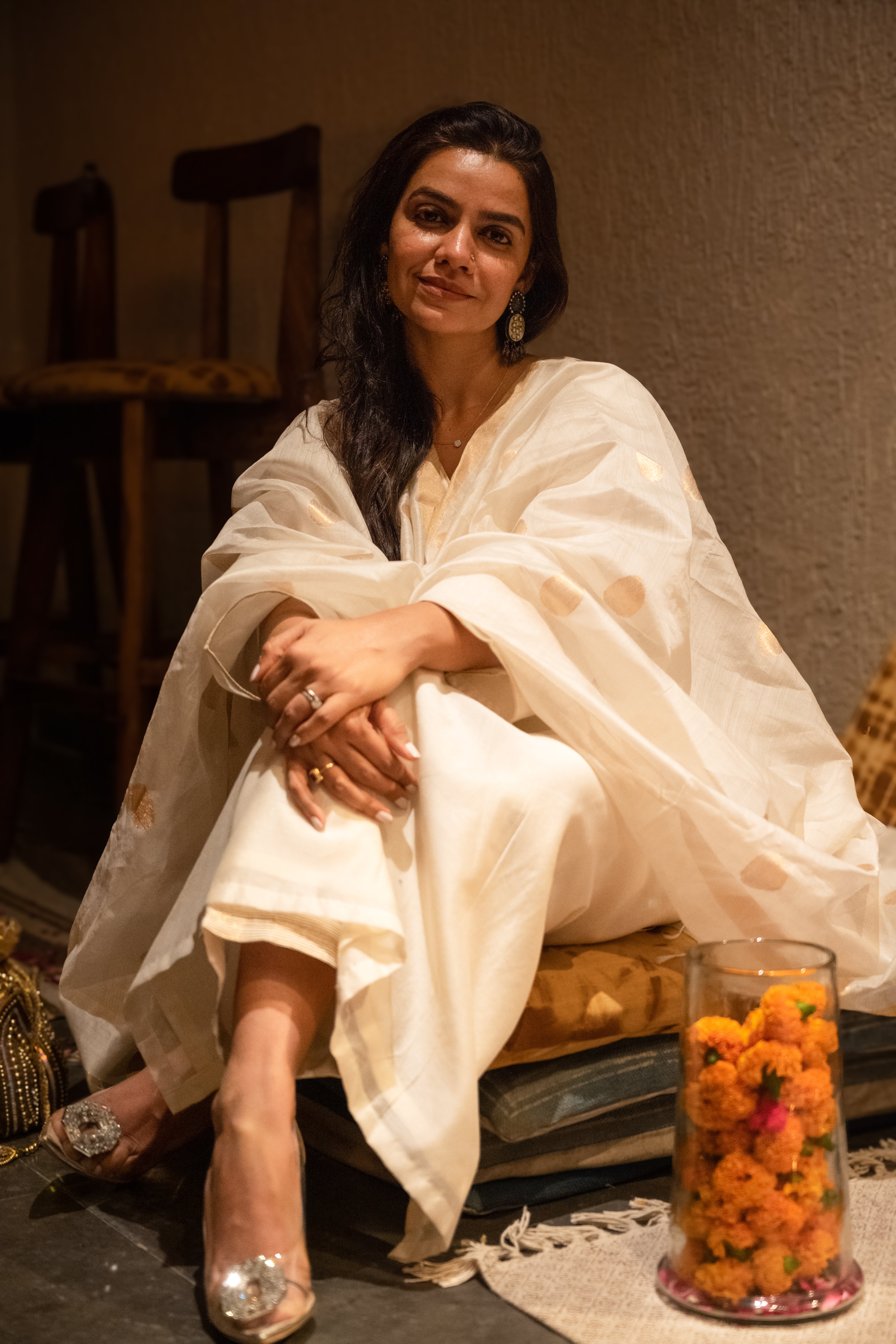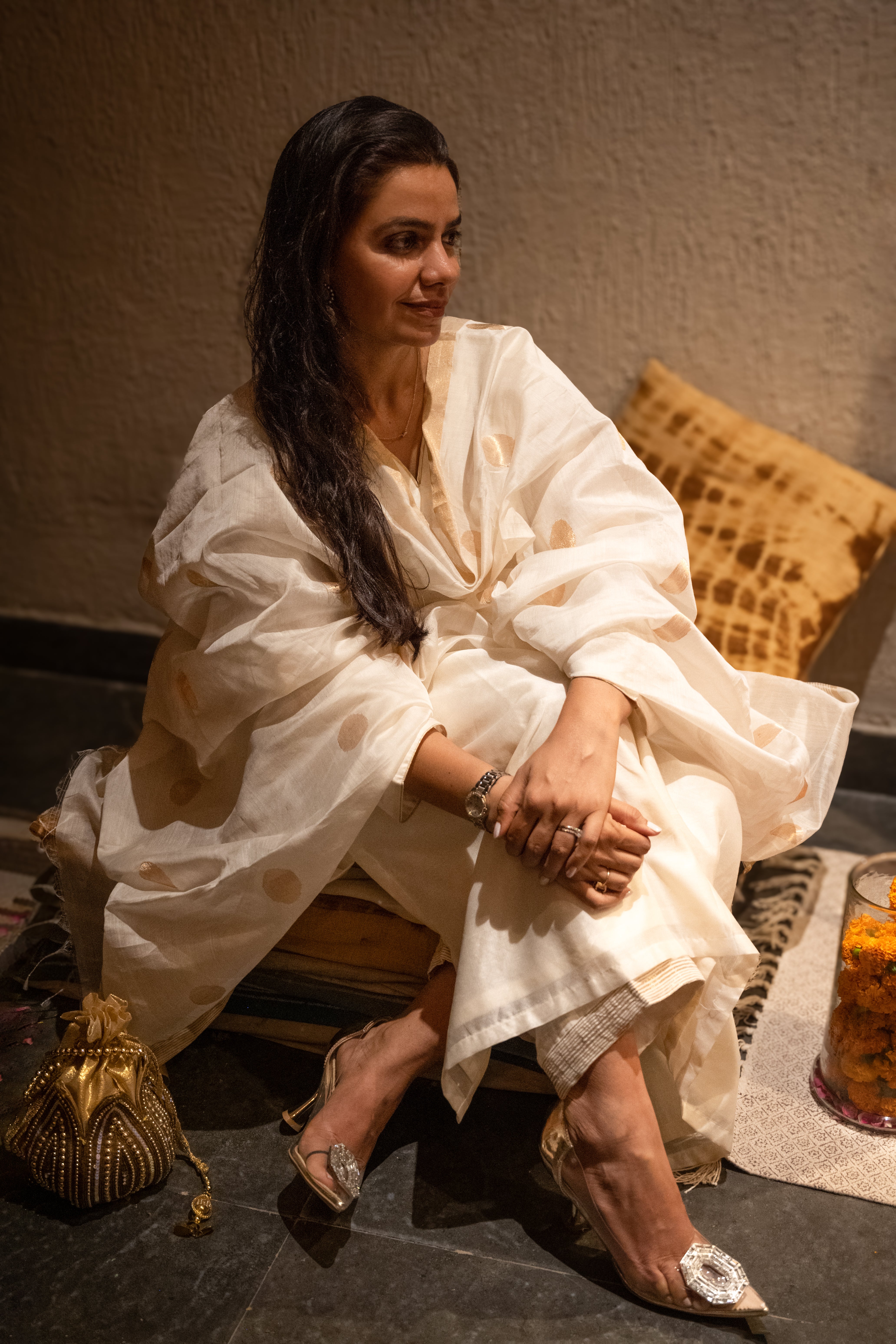 Pure handloom silk kurta set with Ajrakh Dupatta