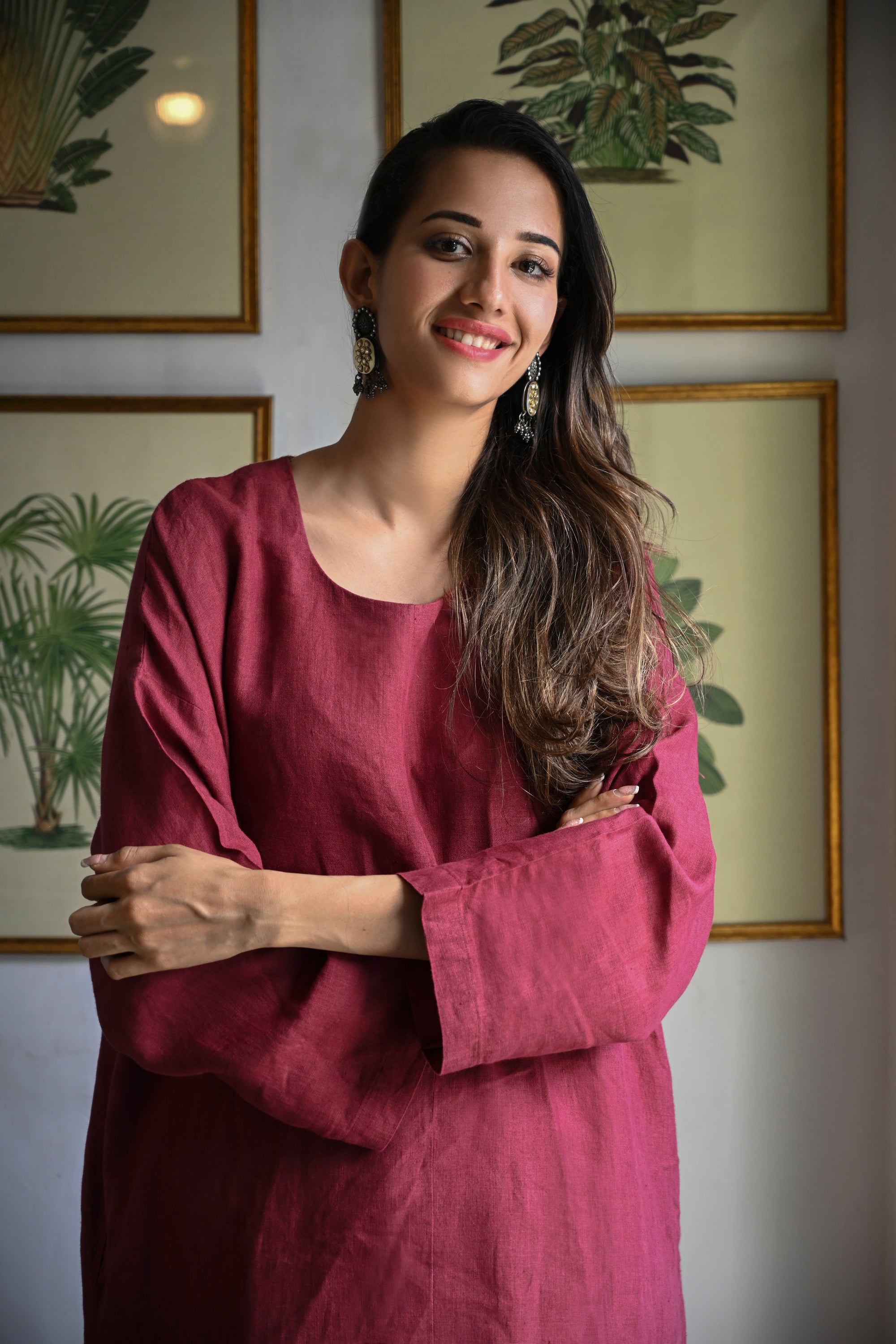 Pure handloom silk kurta set with Ajrakh Dupatta