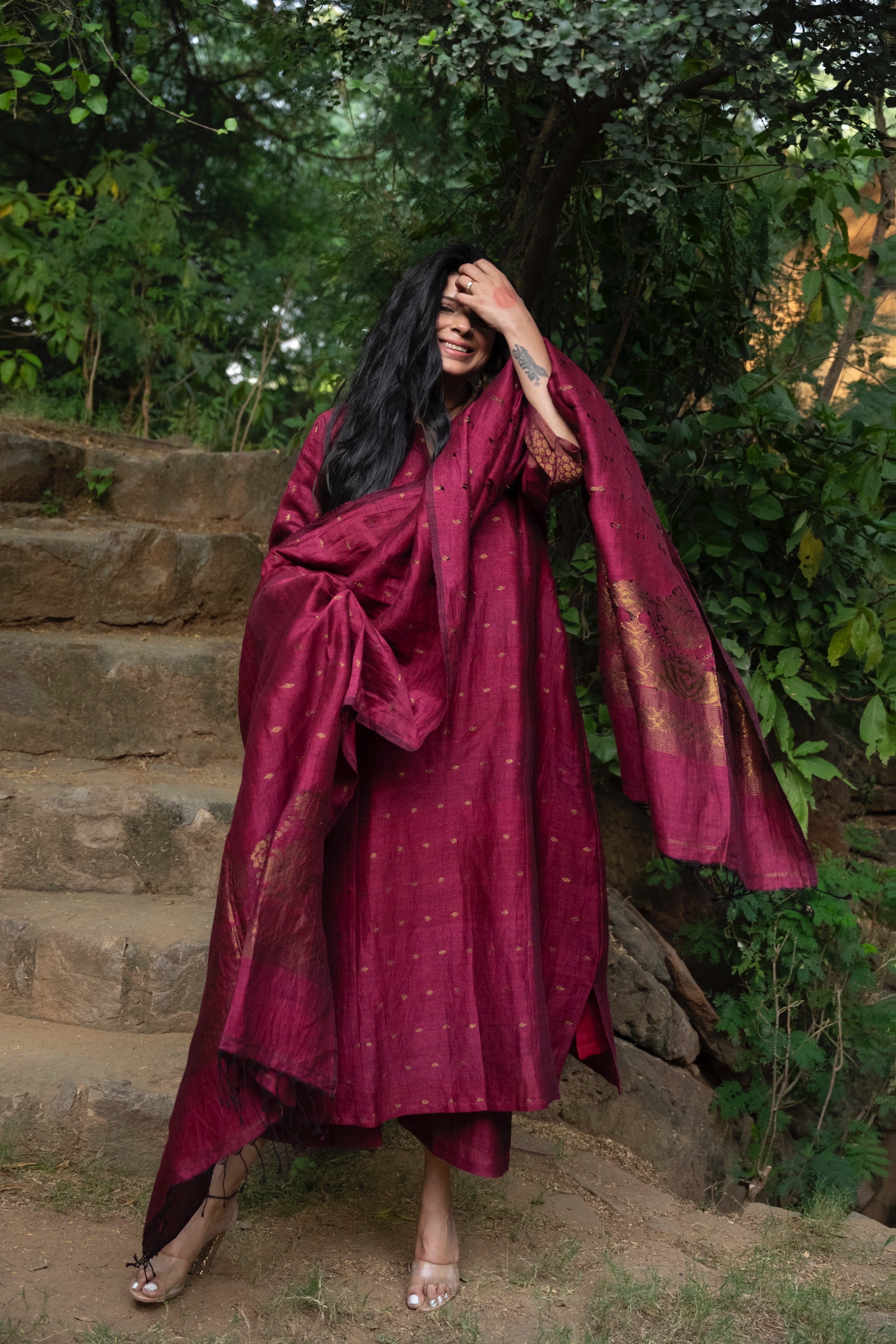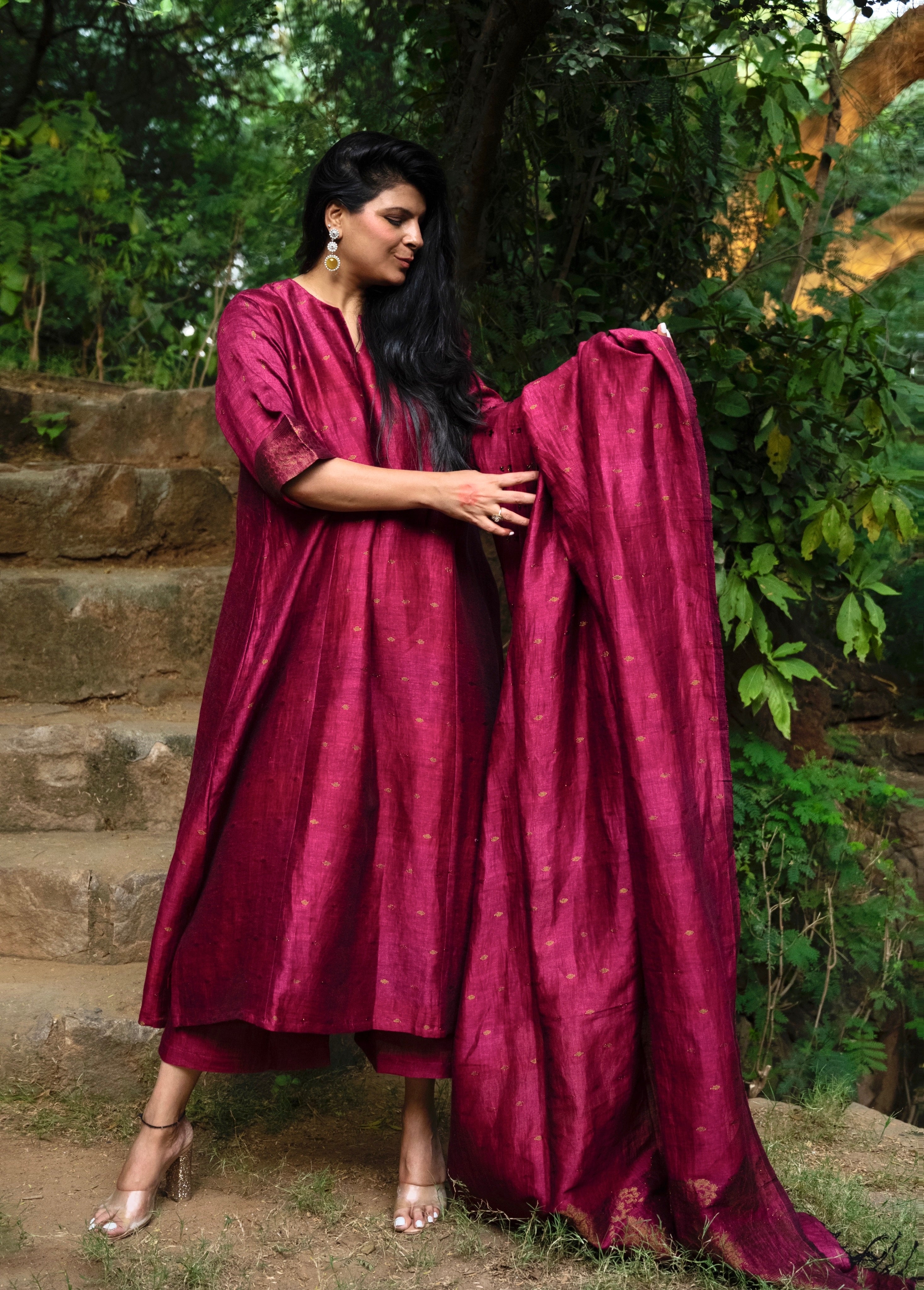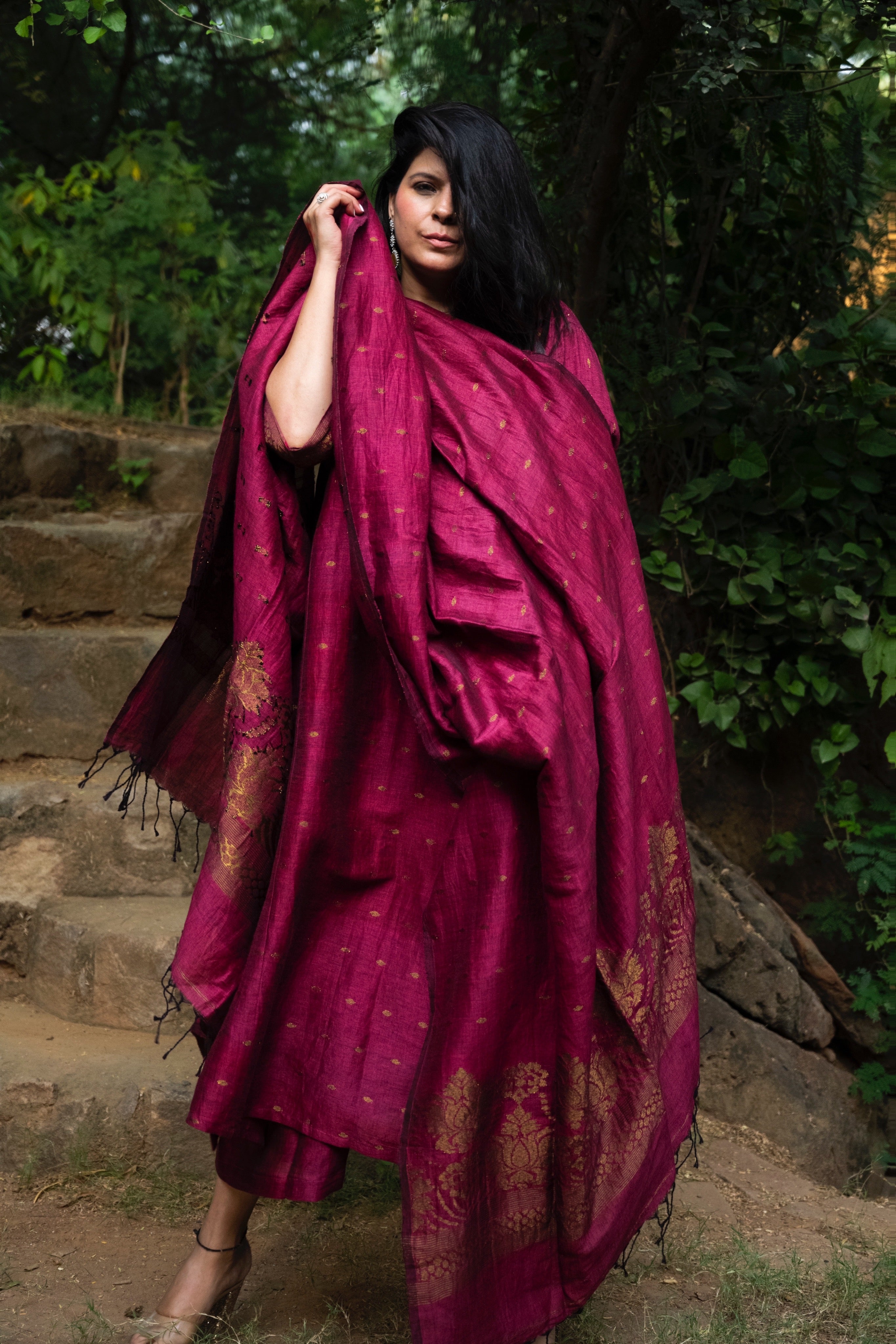 Pure handloom silk kurta set with Ajrakh Dupatta