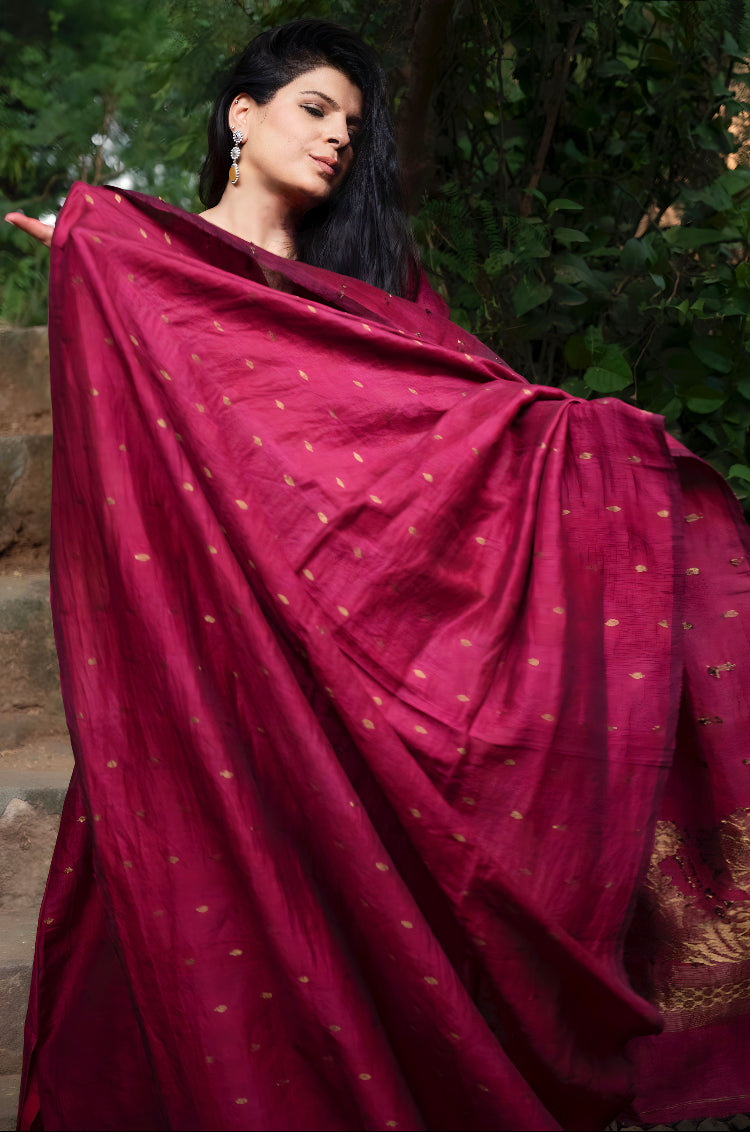 Pure Chanderi Silk With Handwoven Zari Motifs