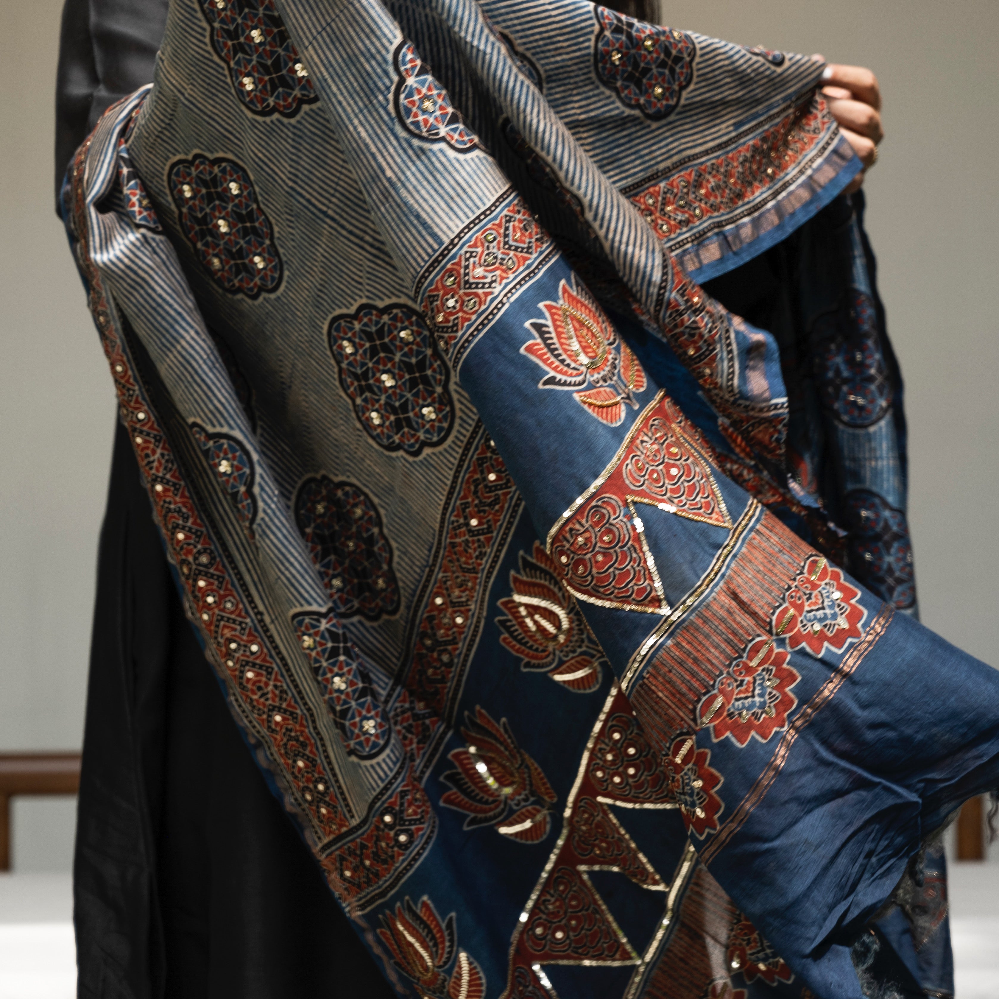 Pure Handloom Silk Ajrakh Set