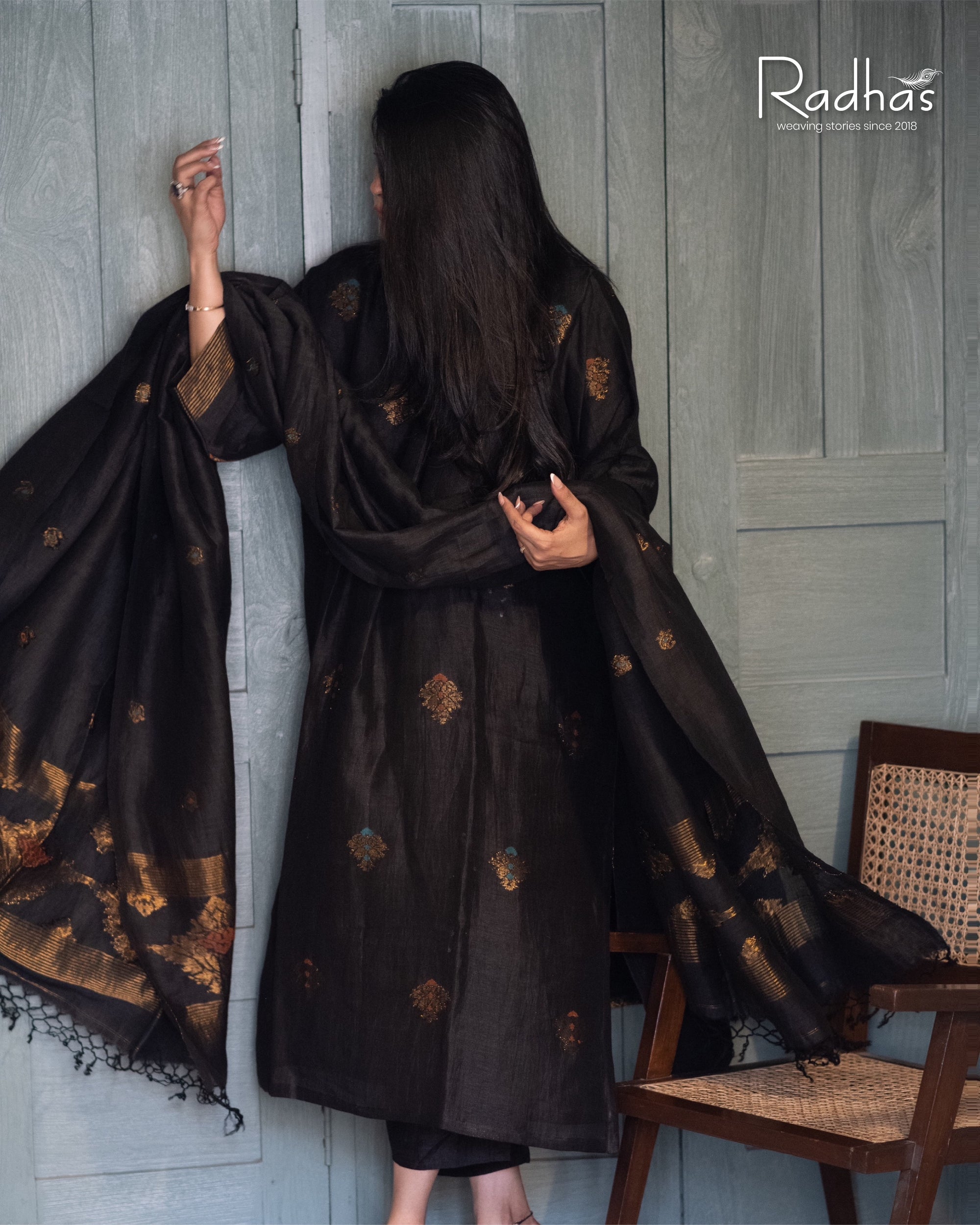 Pure Chanderi silk with Handwoven Zari Motifs