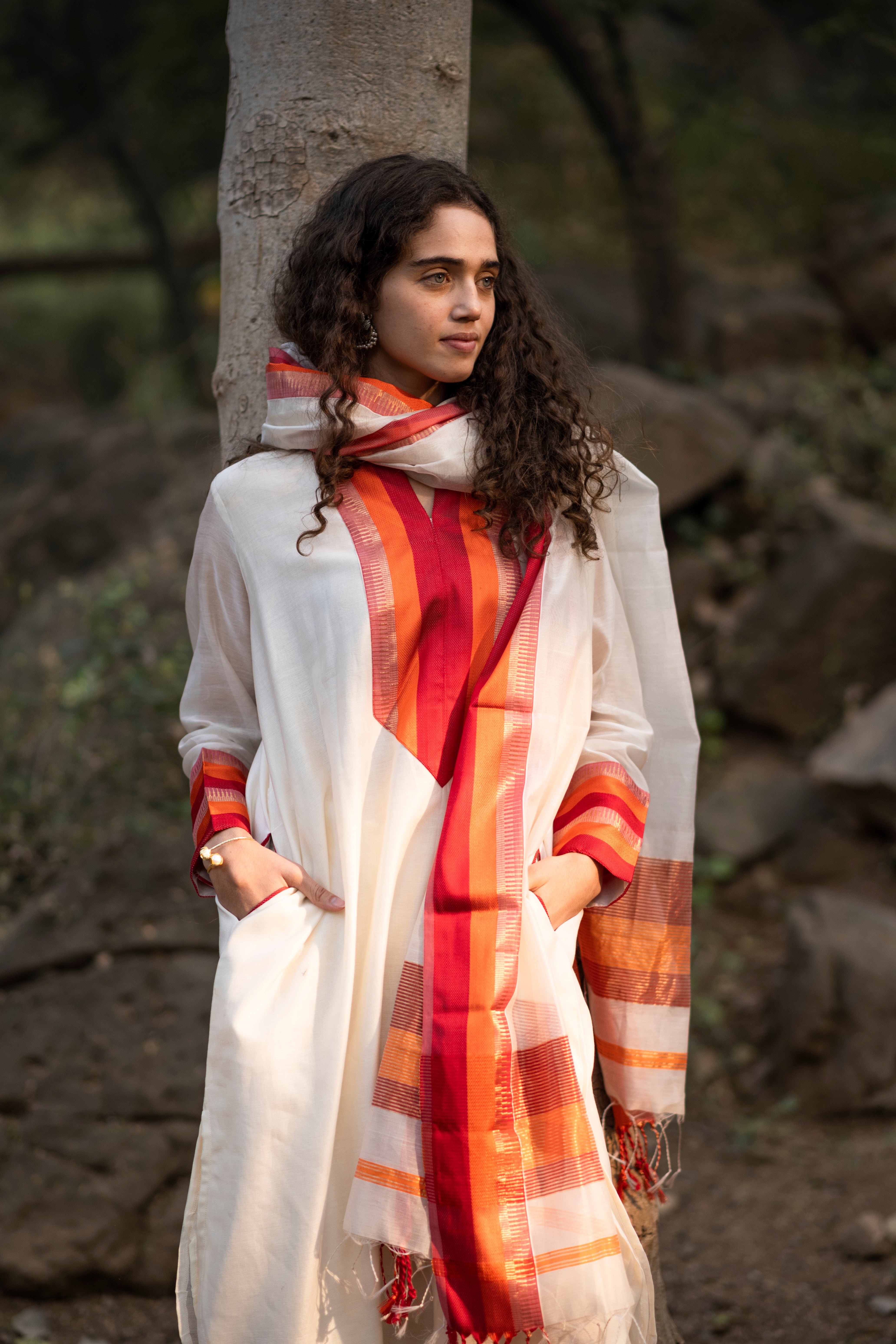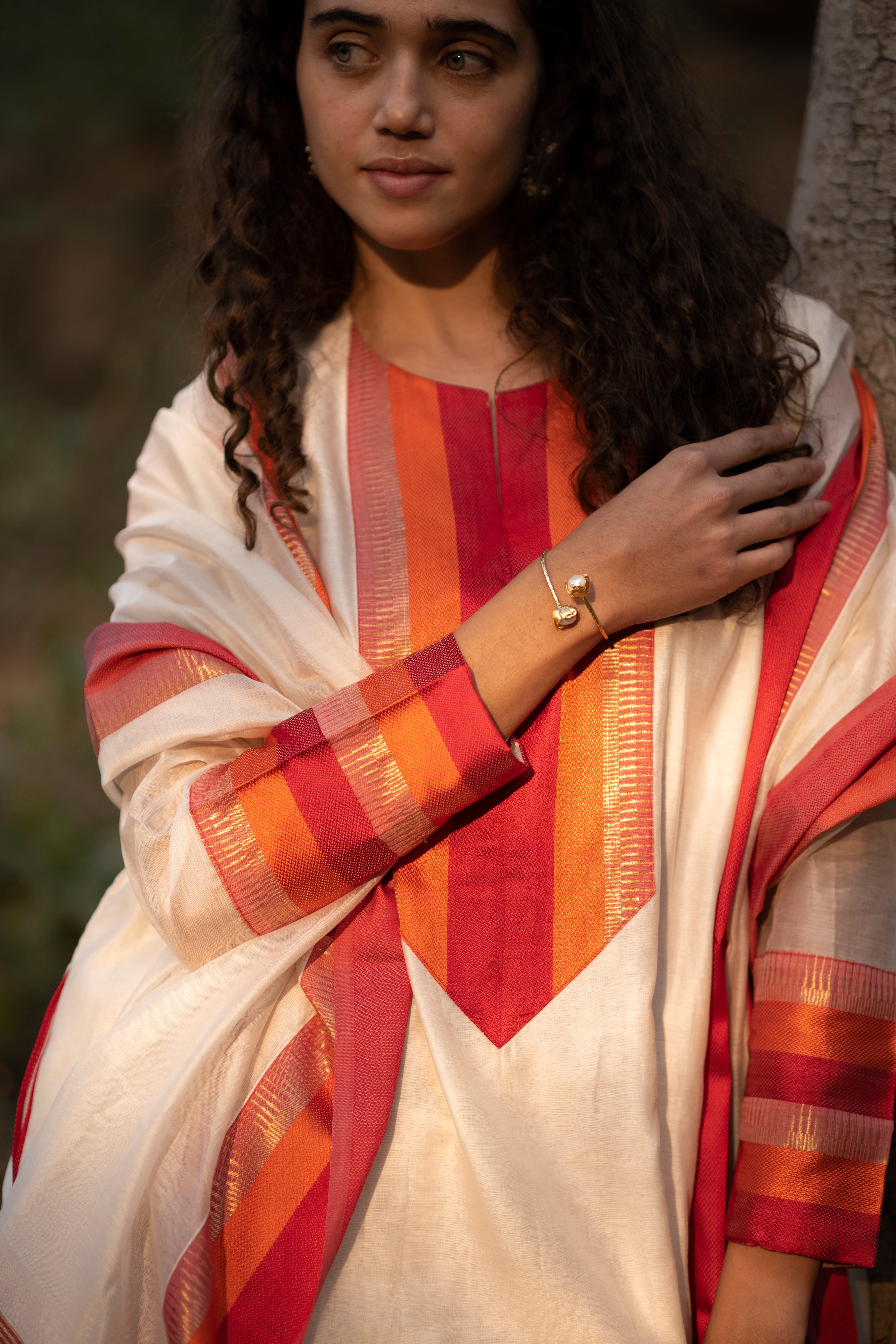 Pure Chanderi Silk With Handwoven Zari Motifs