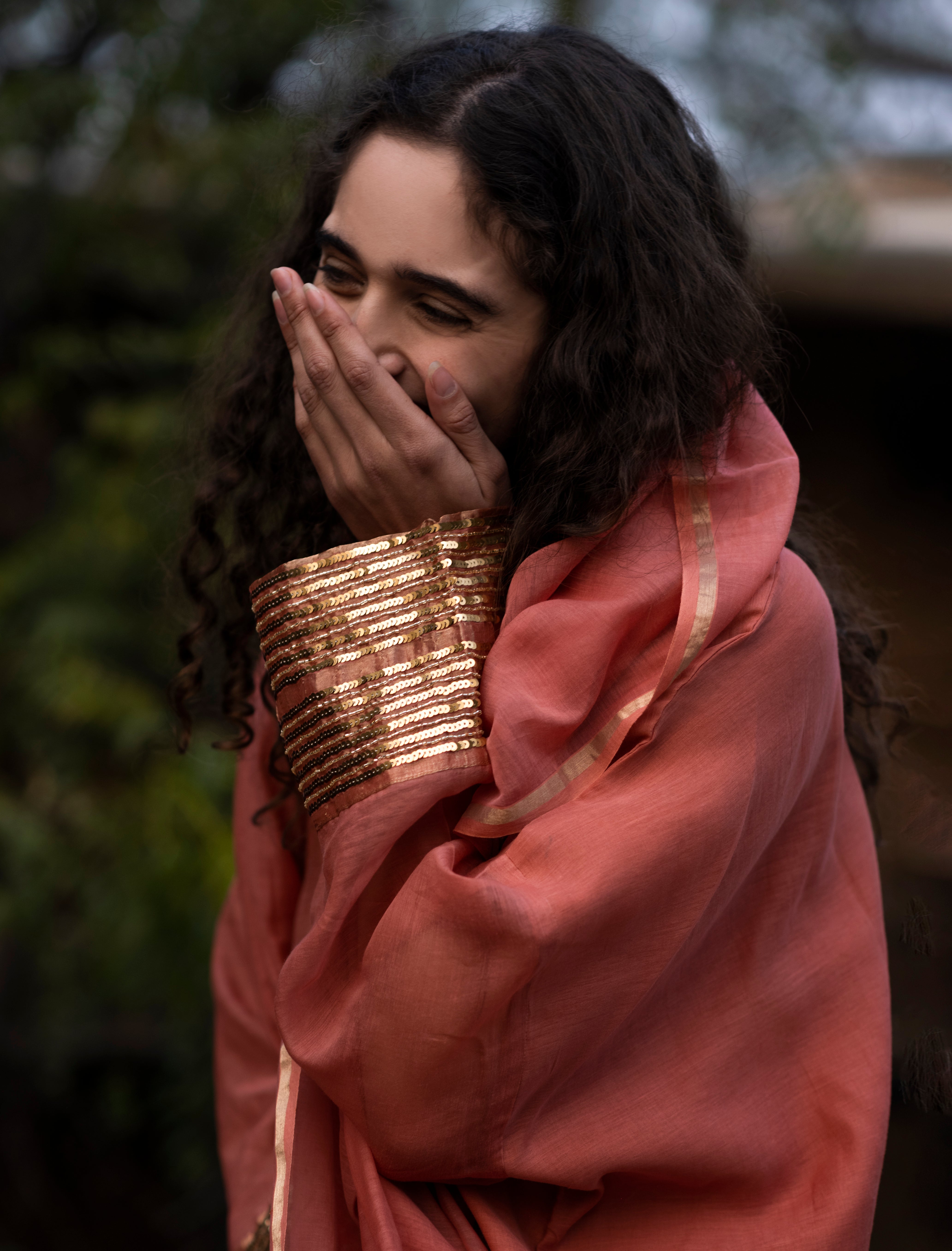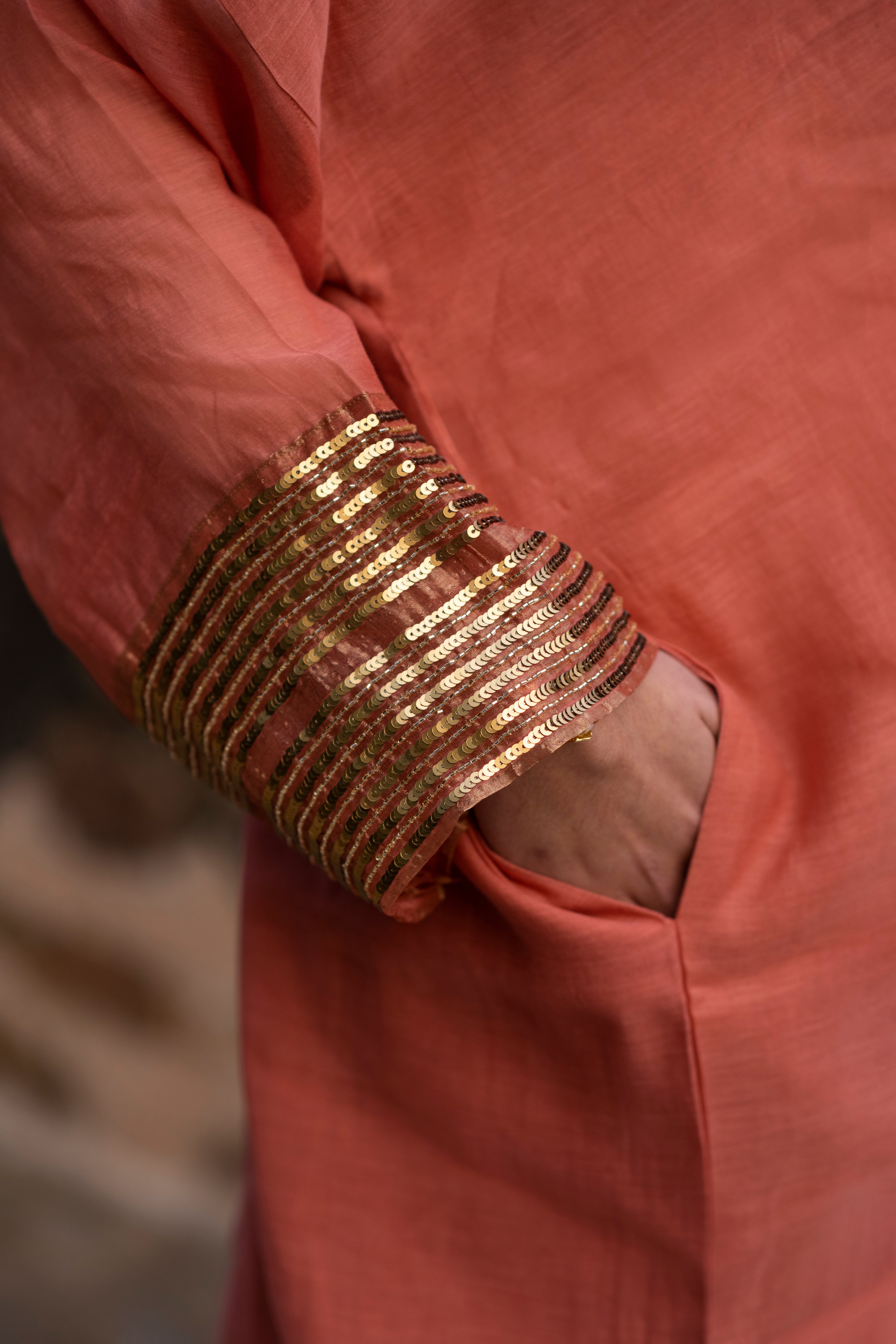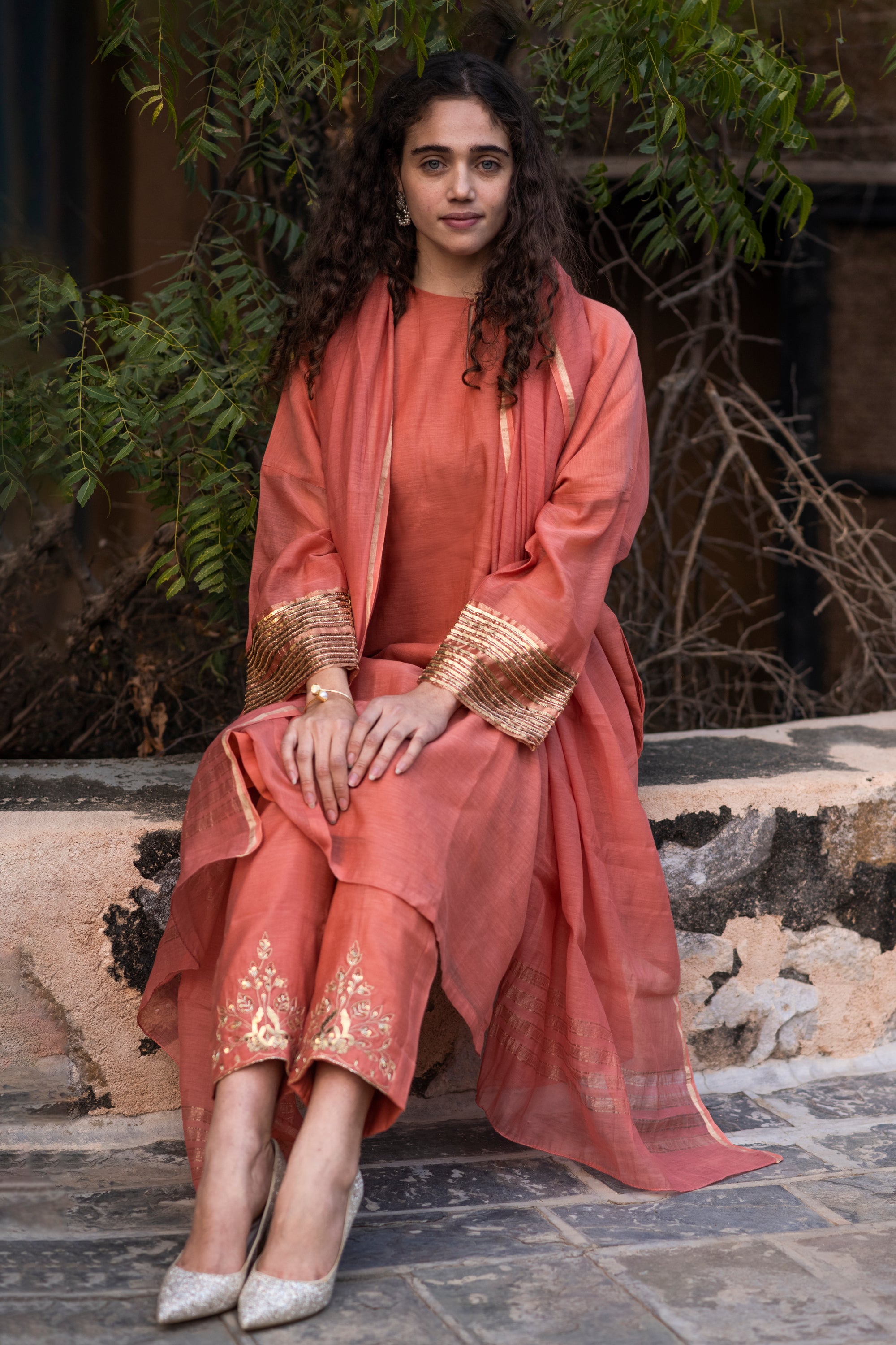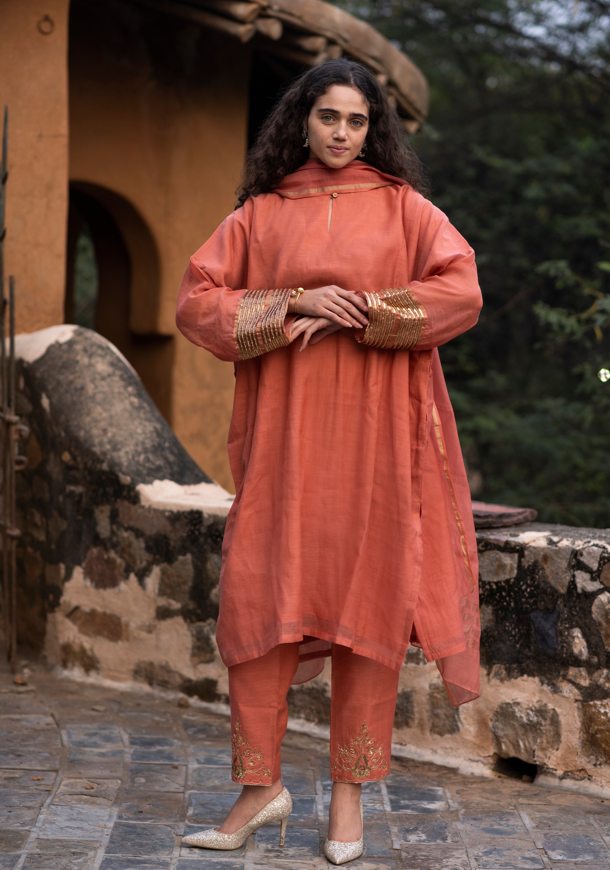 Pure handloom silk kurta set with Ajrakh Dupatta