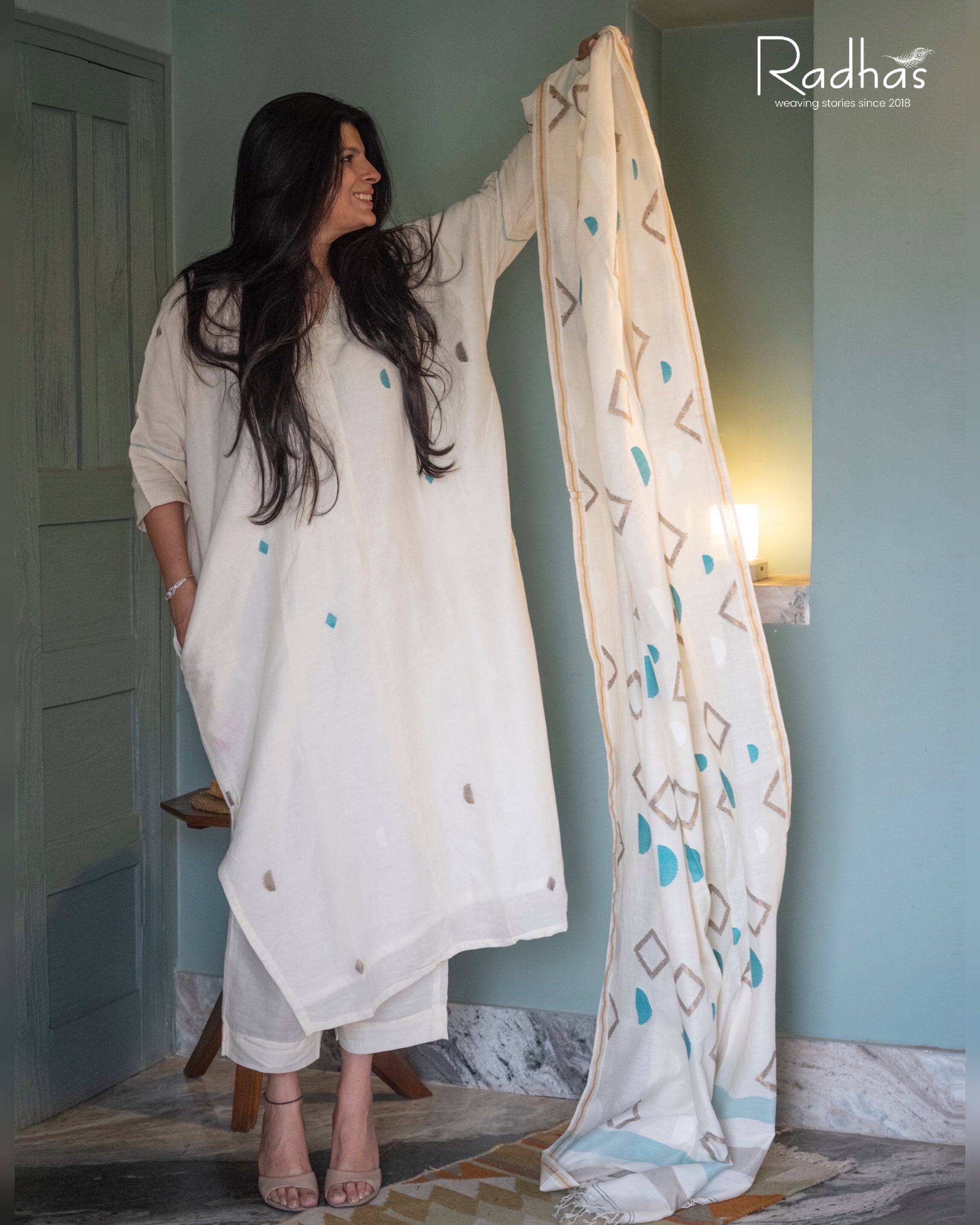 Pure handloom silk kurta set with Ajrakh Dupatta