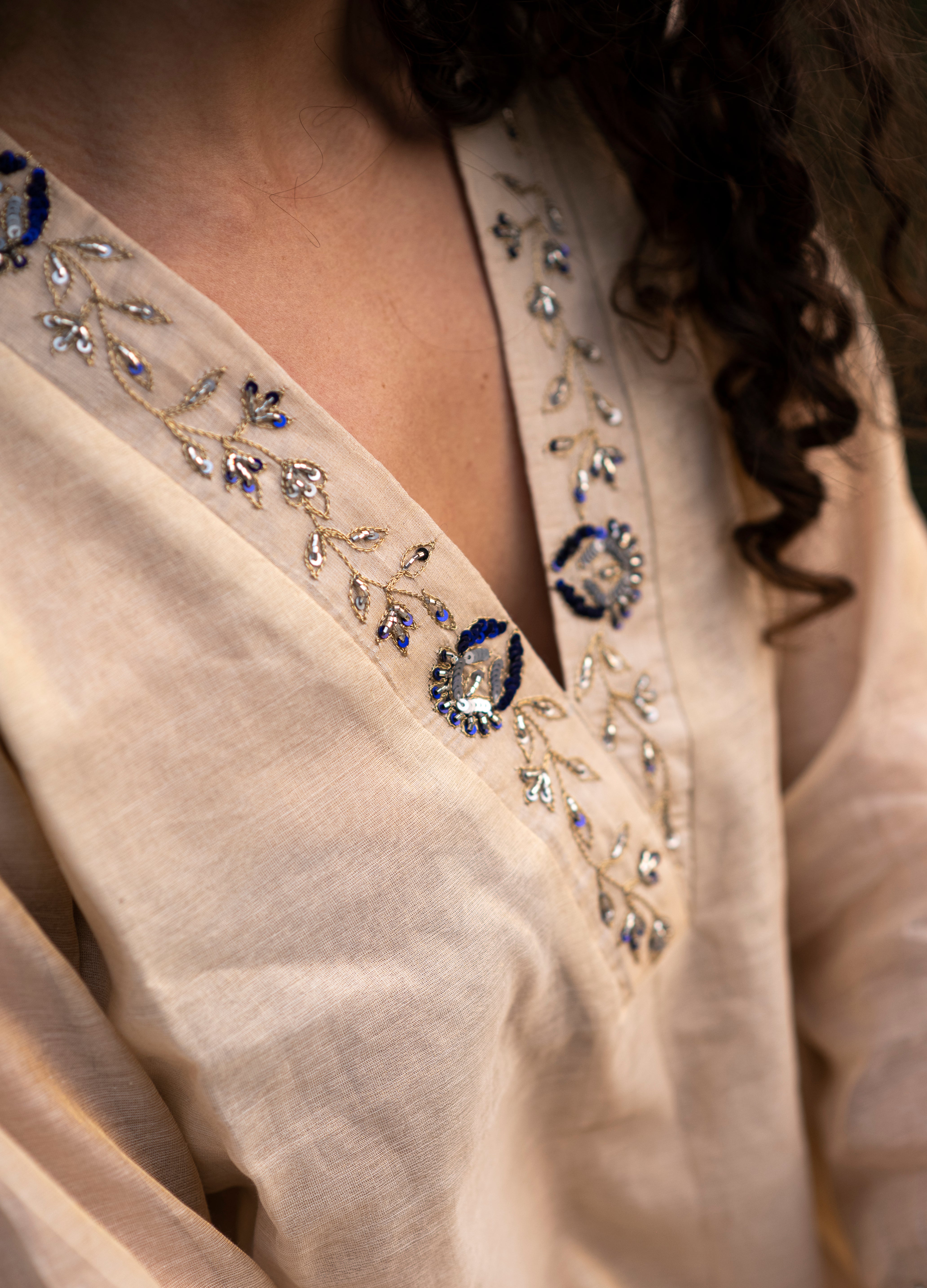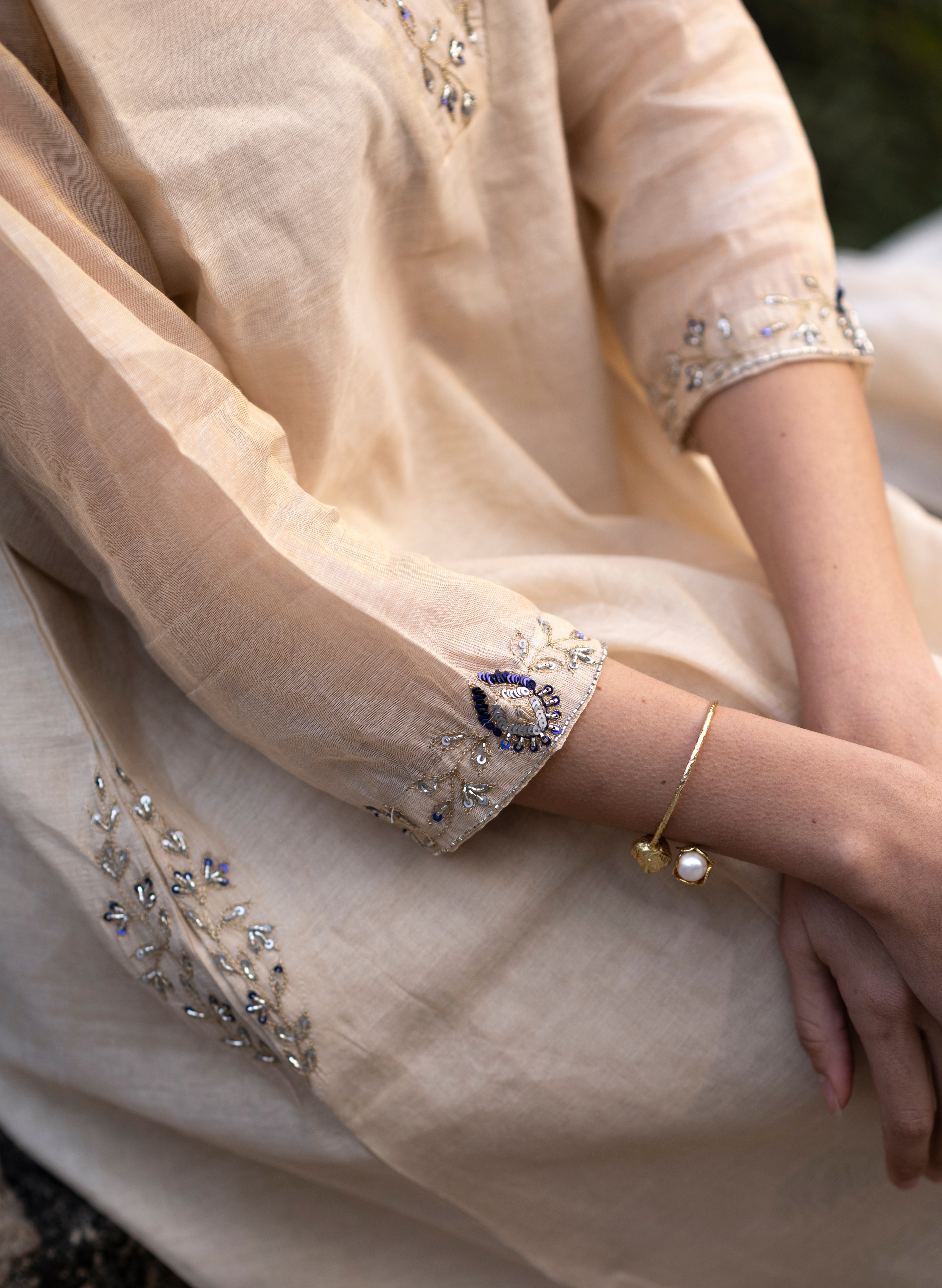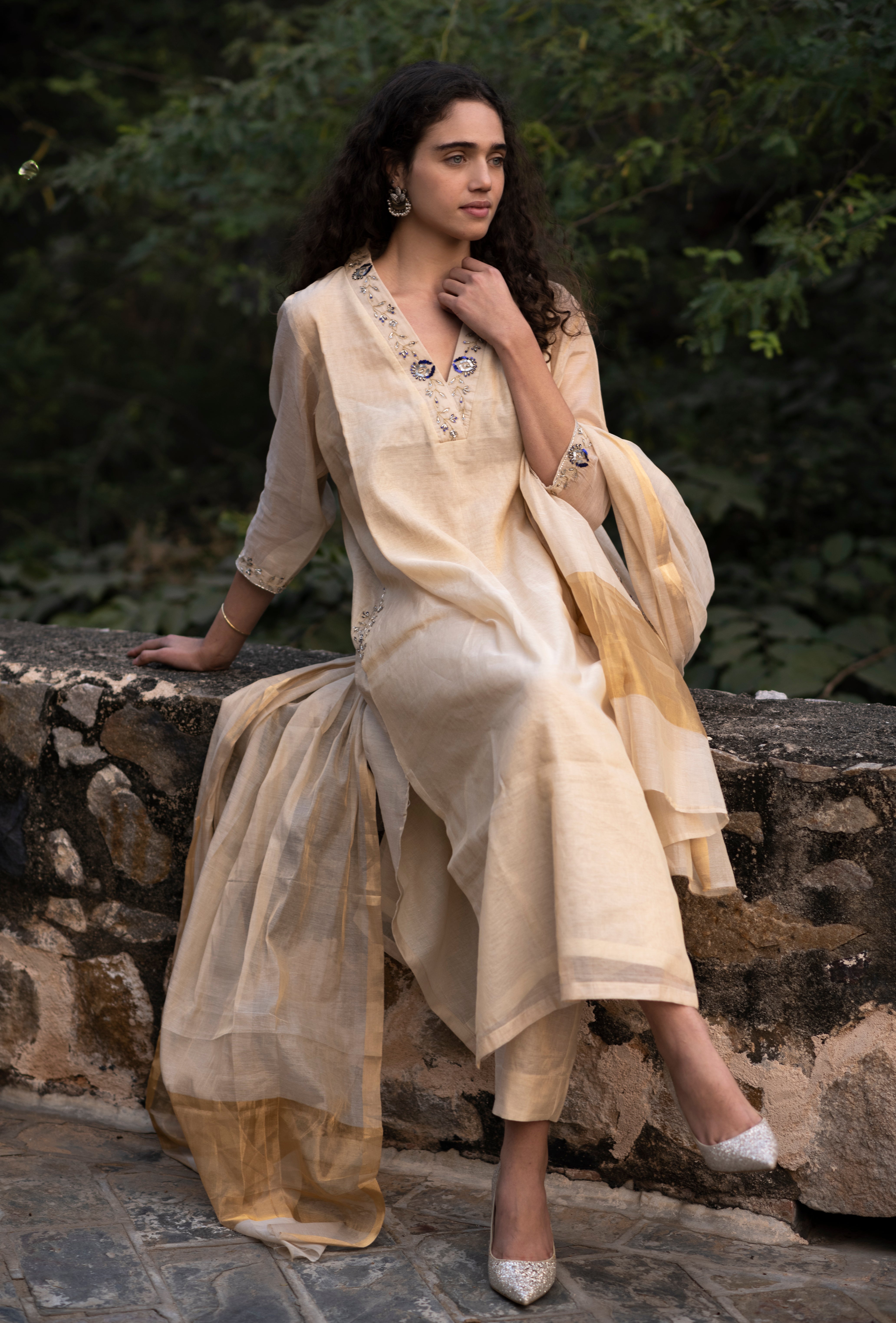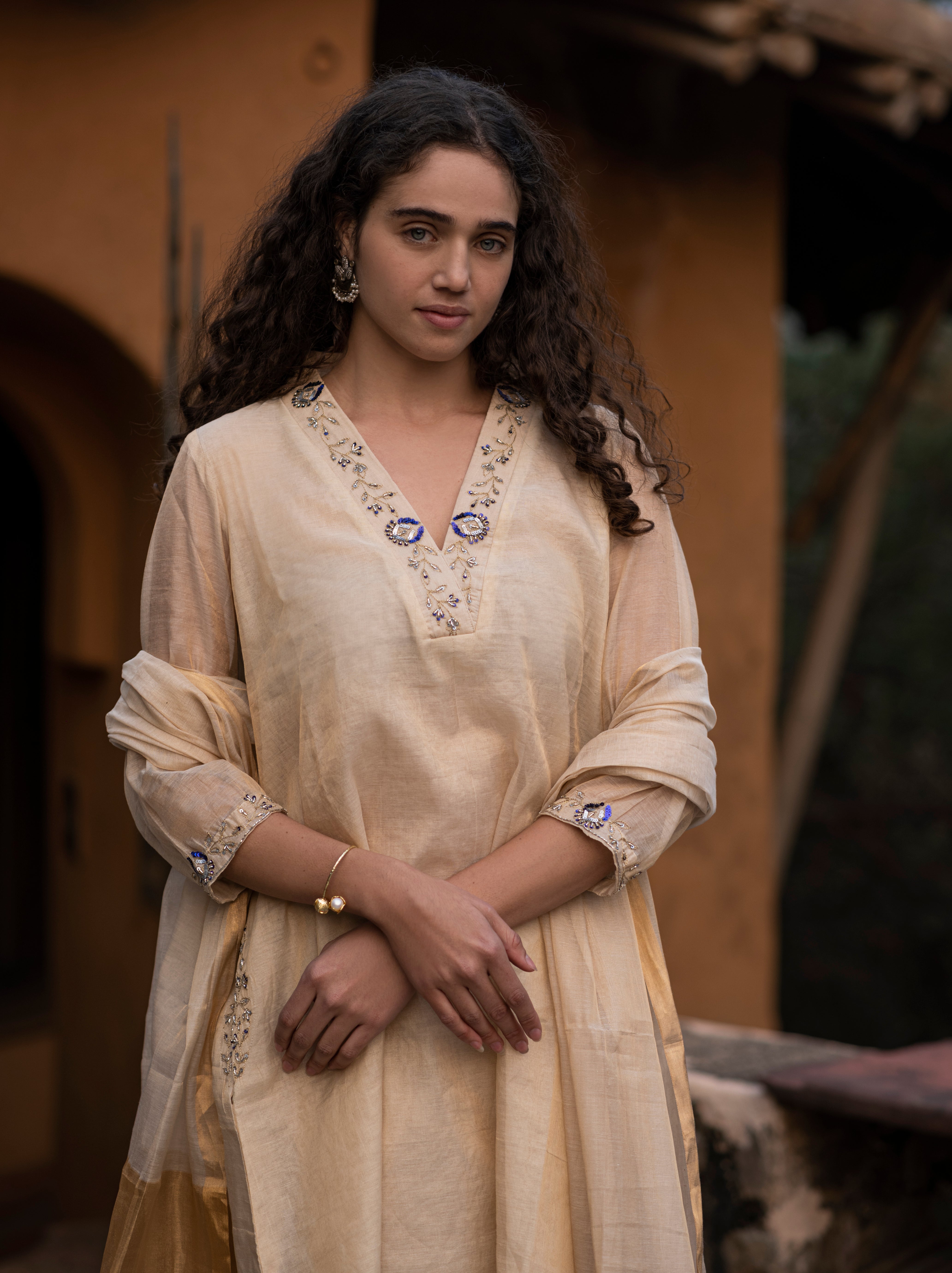 Pure handloom silk kurta set with Ajrakh Dupatta