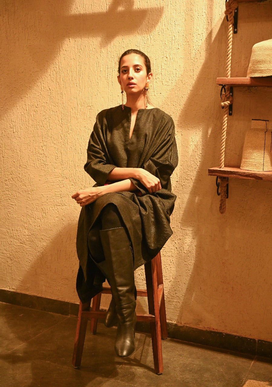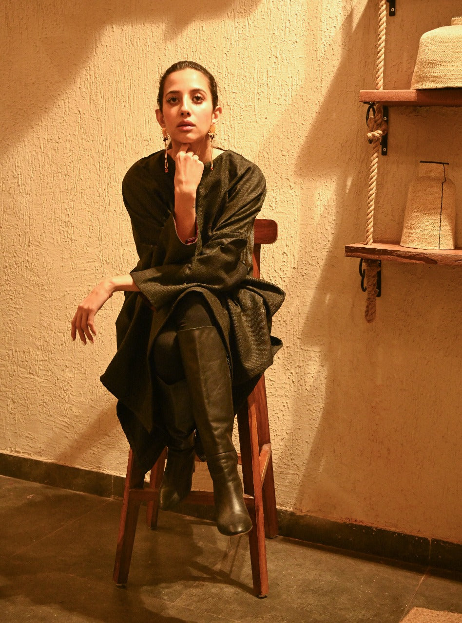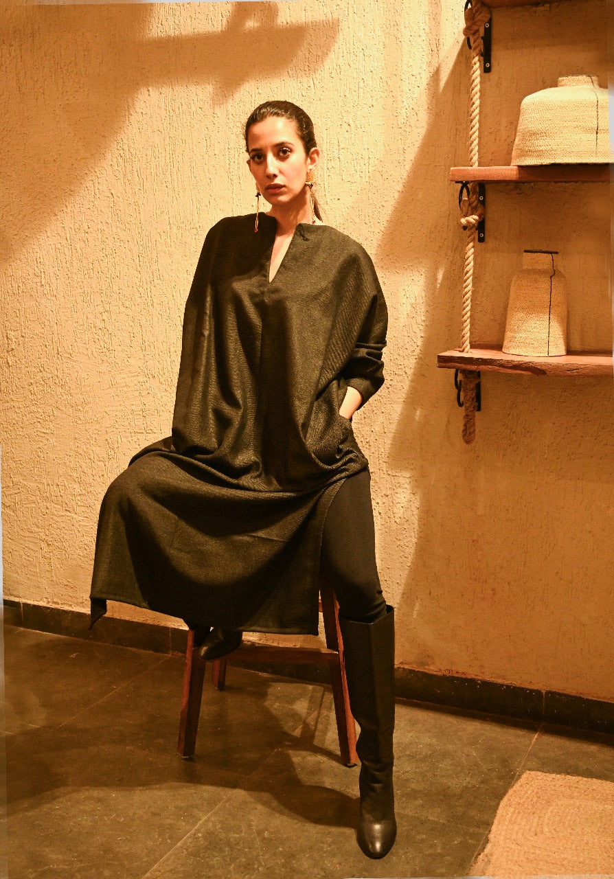 Pair it with black tights and long boots for a chic, powerful winter statement, or wear it with salwar and mojaris for a timeless Indian–Kashmiri elegance.