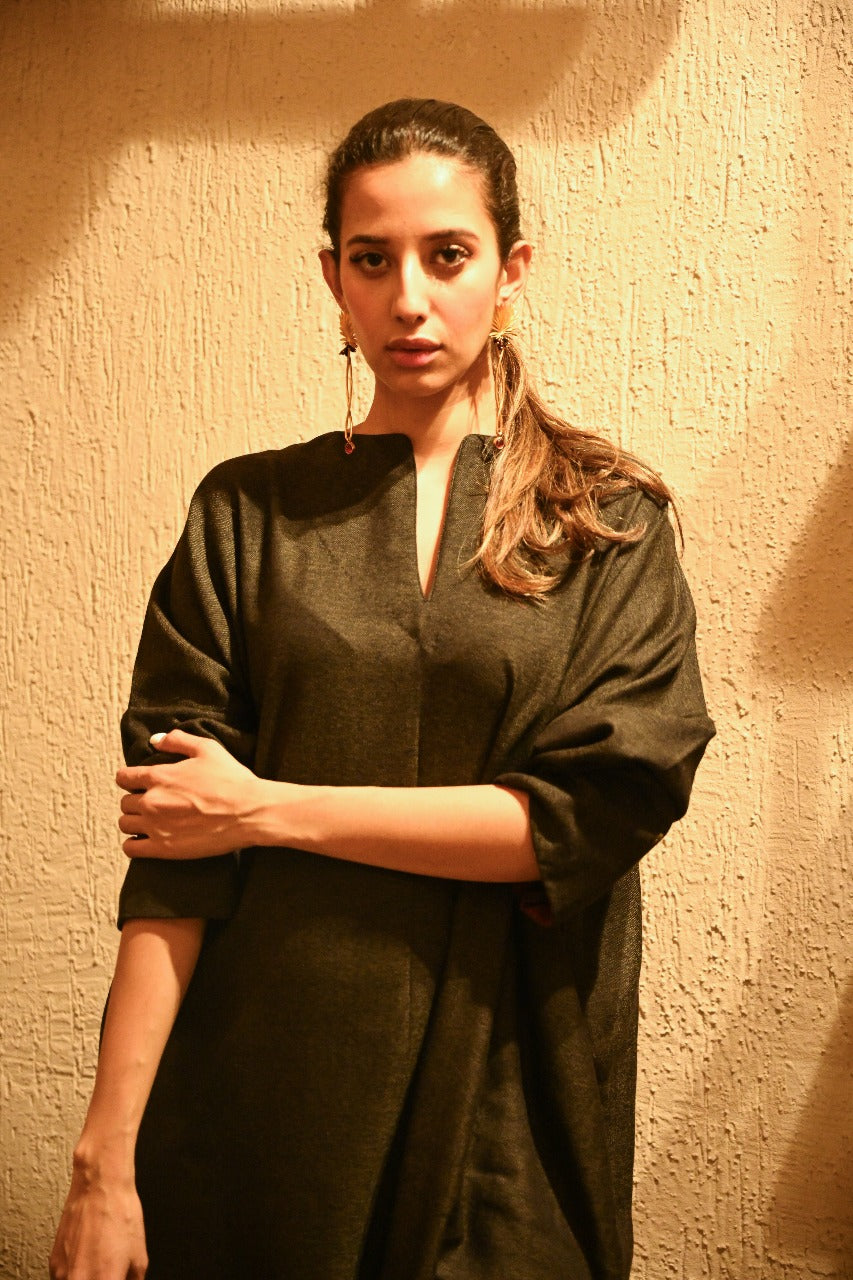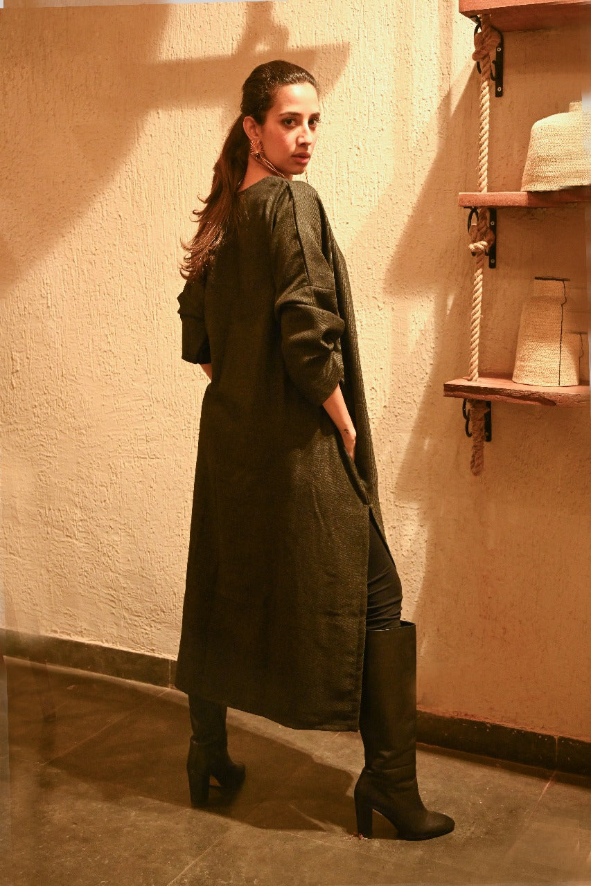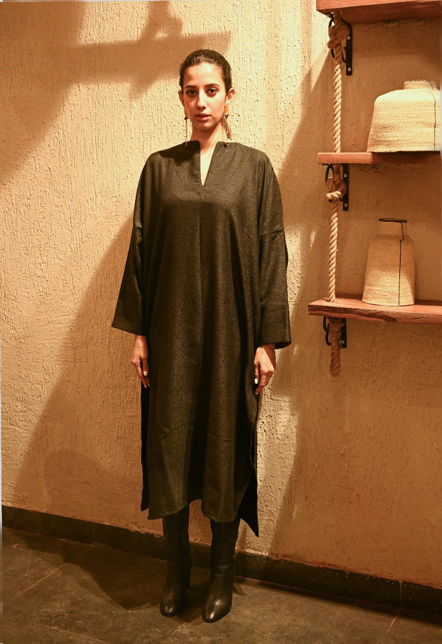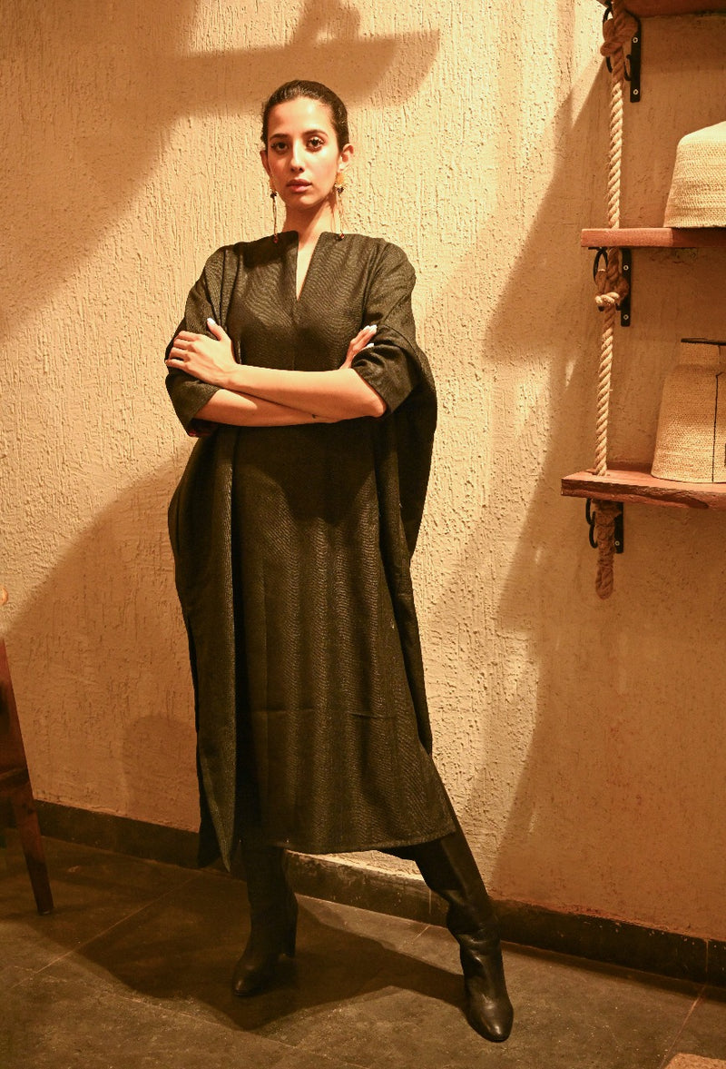 Pair it with black tights and long boots for a chic, powerful winter statement, or wear it with salwar and mojaris for a timeless Indian–Kashmiri elegance.